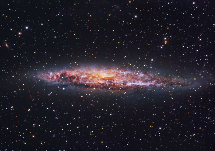 NGC 5253 – своеобразная неправильная галактика, имеет блеск 10,1m и видимые размеры 5,0' × 1,9'. Находится на расстоянии около 10,9 млн. св. лет от нас. Близкая к нам галактика, которая в результате гравитационного взаимодействия с соседями резко увеличила скорость звездообразования. Отметилась вспышками 2-х сверхновых, причем сверхновая 1972E имела видимый блеск 8,5m, и до сверхновой в БМО 1986 года являлась самой яркой в 20-м веке.