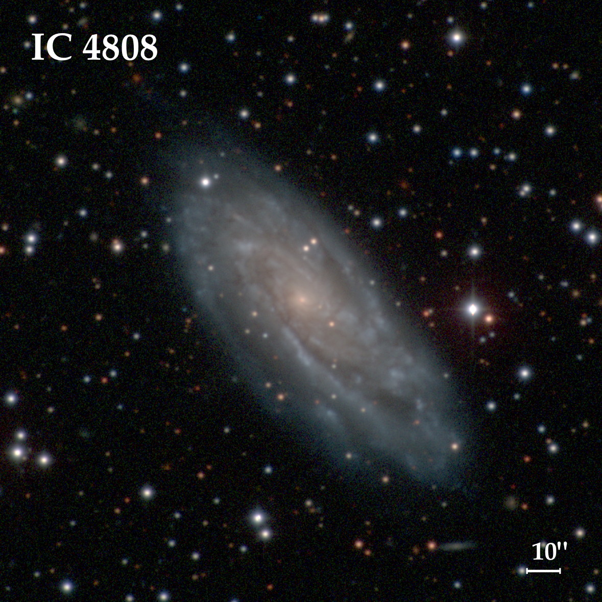 IC 4808 – спиральная галактика, имеет блеск 12,3m и видимые размеры 2,0' × 0,8'. Координаты: α= 19ч 01м 07,5с δ= -45° 18′ 51″.
