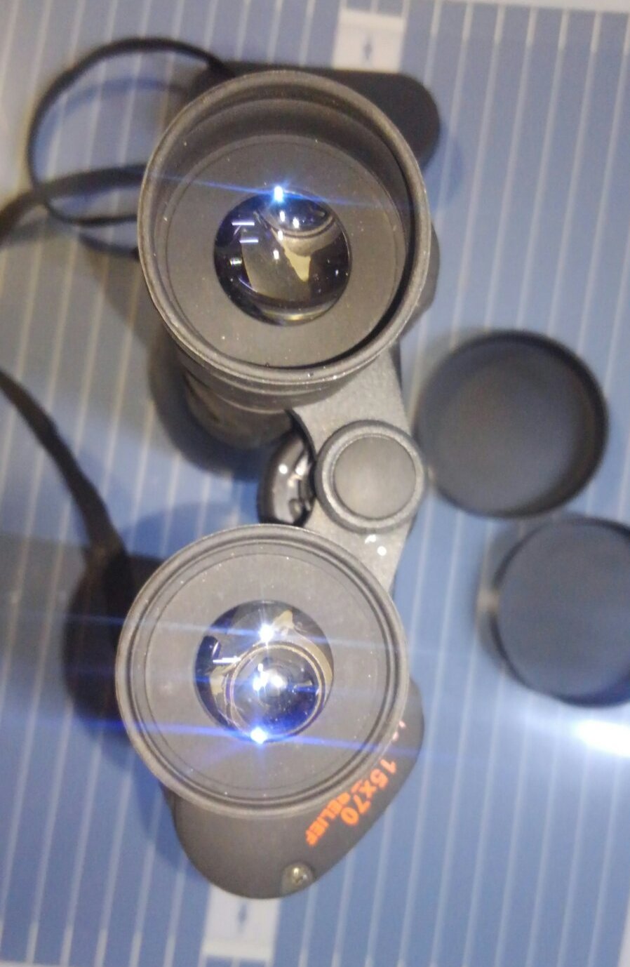 Вывод: вес бинокля уже не маленький, быстро с рук глянуть можно, но если долго, нужен штатив. Днём вполне комфортно наблюдать и фокусное уже достаточное , чтоб приблизить и разгядеть далёкий объект. Ночью так-же можно вести наземные наблюдения по освещённым объектам , объектив диаметром 70 мм. это позволяет. DIP SKY наблюдать , одно удовольствие. А со штатива последний раз, час наблюдал немог оторваться