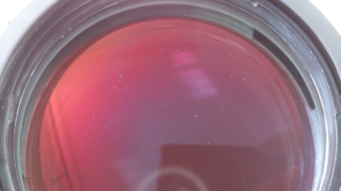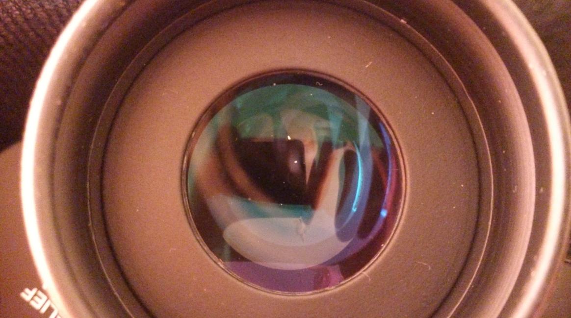 Ласинок-тонких царапинок уже сделано достаточно ,на фото заметно,и помойму одна большая царапинка.Пыль на линзах можно просто сдувать грушей,а протирать надо как можно реже,когда совсем уже станет заметно что грязные.Разводы желательно стирать специальными средствами и специальной материей,или карандашём-линзпен,иначе царапин не избежать да и повредить покрытие линз несложно неосторожным движеним.