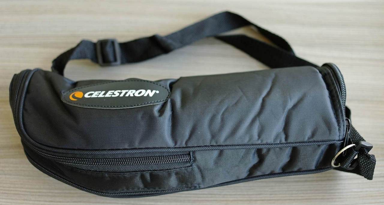 Чехол, в котором находится труба имеет очень практичную конструкцию. Конструкция чехла позволяет пользоваться трубой, не вынимая ее из чехла. Для этого на переднем и заднем конце чехла вшиты застежки типа молния, которые позволяют открыть объектив и окуляр трубы. Правда, в таком виде ее нельзя поставить на штатив, т.к. площадка для установки на штатив при этом не открывается.
