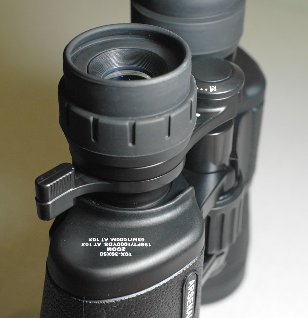 Поле зрения окуляров при увеличении 10х - 35 градусов, что несколько ухудшает зрительное восприятие на минимальном увеличении (впрочем, это характерный недостаток всех zoom биноклей). При максимальной кратности угловое поле зрения окуляров заметно увеличивается (48 градусов) и становится вполне комфортным. При увеличении 30х наблюдать с рук сложно (из-за тремора), поэтому при увеличении более 15х уже желательно использование штатива.