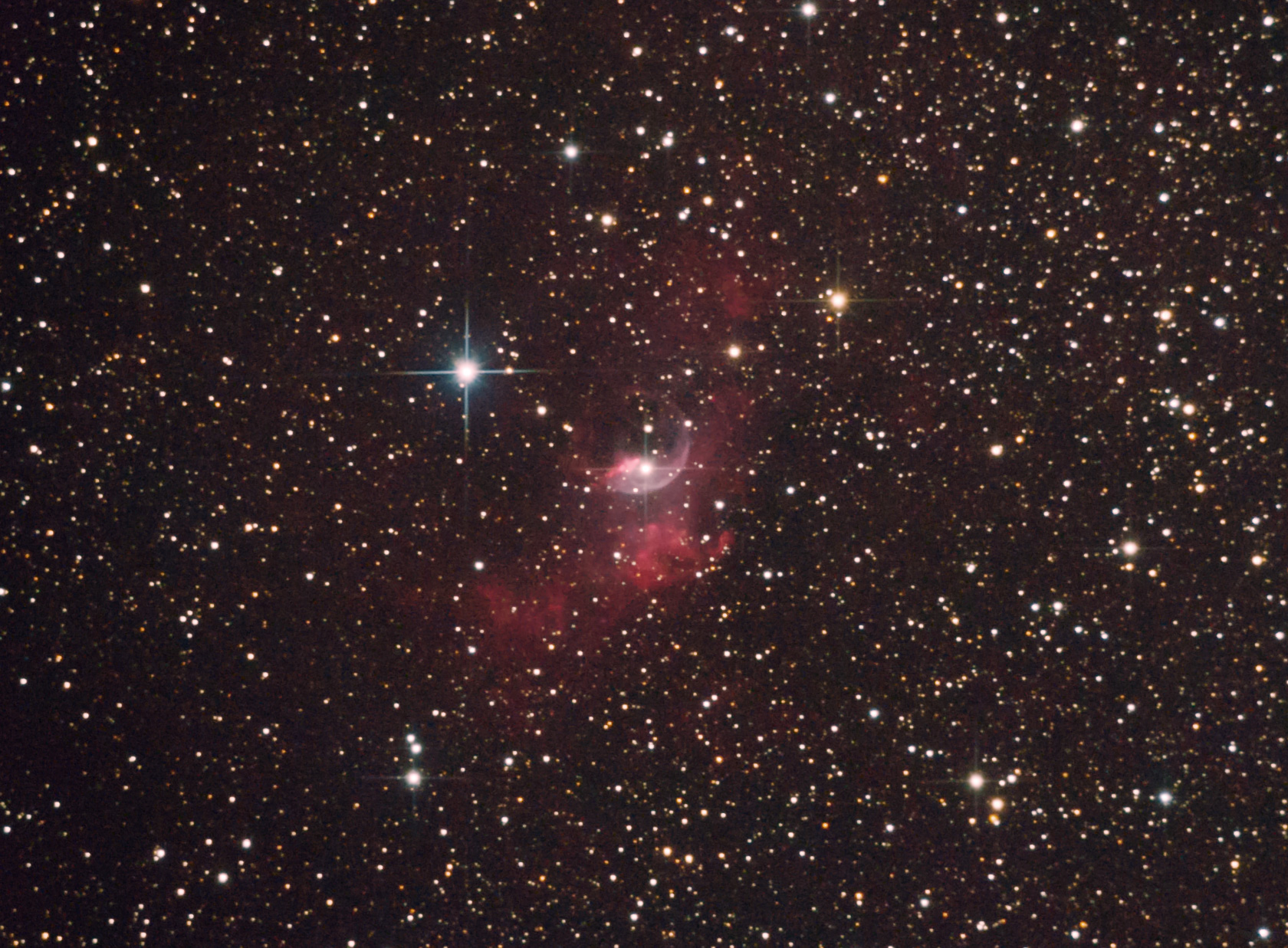 Пузырь снимал на протяжении трёх ночей 10-12 сентября 2017 года (из-за погоды и Луны). В итоге удалось получить 499 кадров по 15 секунд. ISO 320, Nikon D5100, Ньютон 150/750, EQ3-2 на колонне, без гидирования. Сложение по каппе-сигма (3.00, 2 прохода) в DSS. Обработка в Fitswork'e, окончательная доводка в Фотошопе.