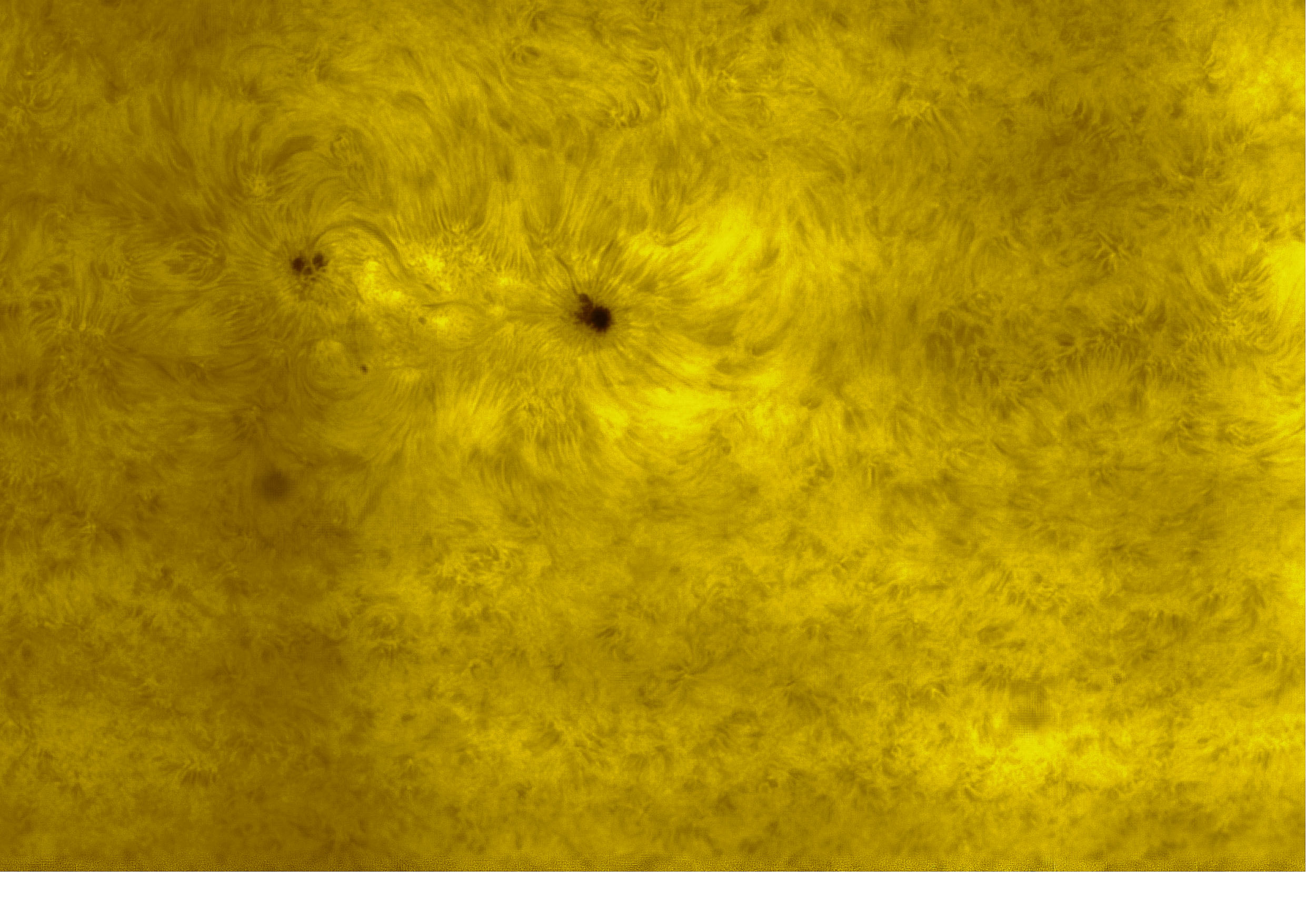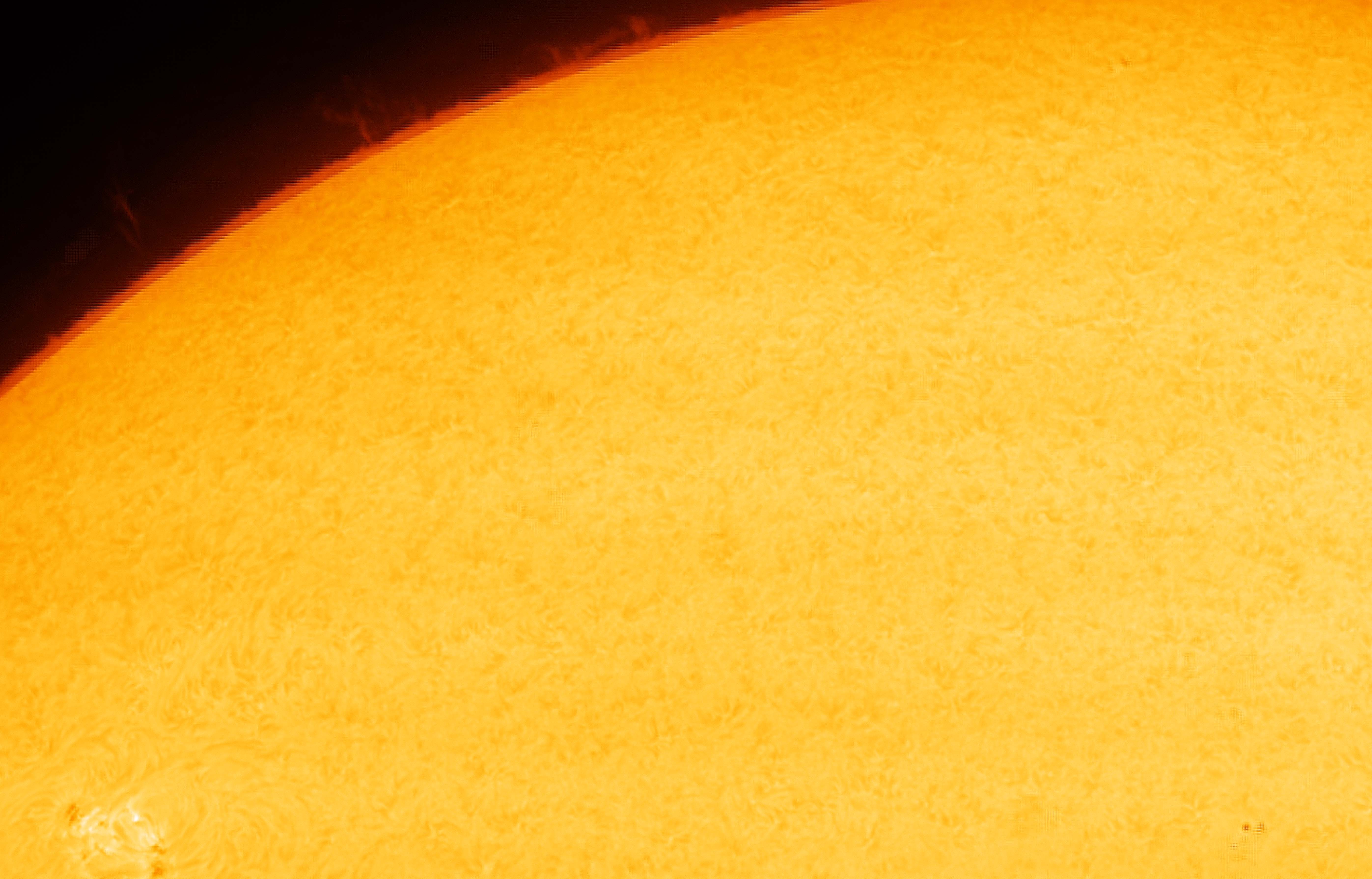 Солнце: Hypertuned AVX Stellarvue SVR102T 102 mm f/7 Apo Triplet Carbon Fiber Камера ASI 174 MM, обработаны 30% из 1000 фрэймов в AutoStakkert 2.6.8 Quark Hydrogen Daystar Chromosphere Еще одно фото с помощью Baader Hershel Prism, обработано 40% Снято в период 28-29/03/2017 в домашней обсерватории.
