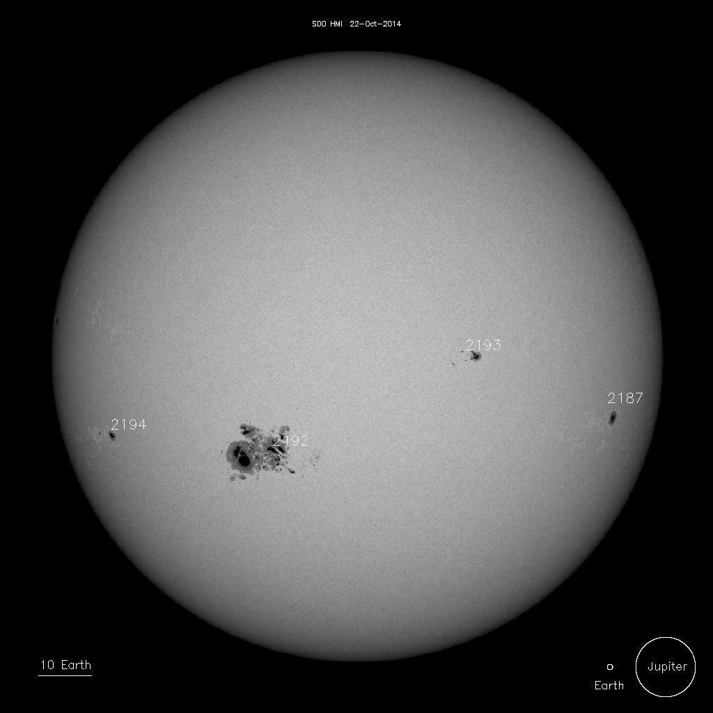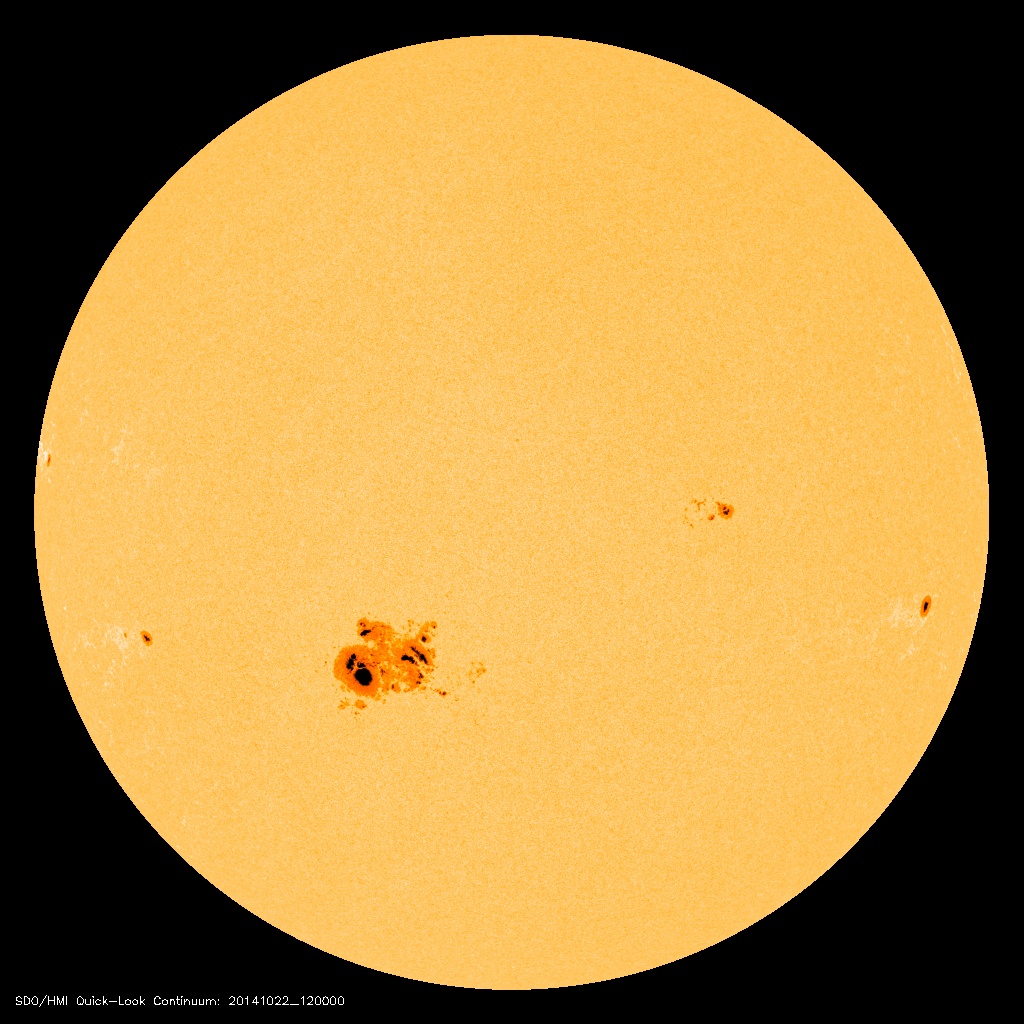 Группа солнечных пятен 2192. 22 октября 2014 года, 12:11, Baader Astrosolar Photo, Sky-Watcher BKP150750EQ5, линза Барлоу НПЗ PAG 3-5x (3x), ZWO 120 MC (1280x960@20fps), Autostakkert (500кадров из 4931), Astra Image