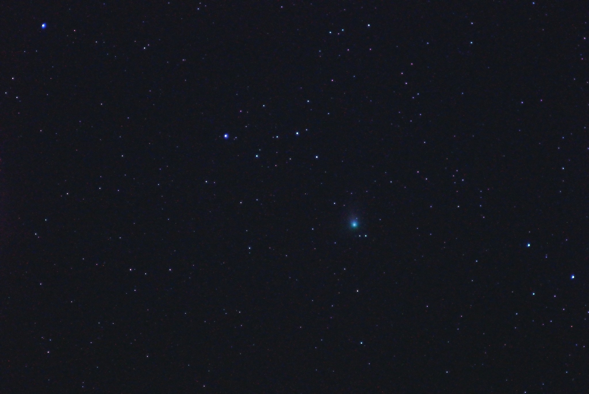 Тоже, проснулся в 5, глянул на небо, увидел звёзды, решил глянуть комету. Так же как у вас дымка мешала разглядеть комету,. Глянул в бинокль 15х70 , не нашёл . Днём небо было относительно чистым, глянул вечером. В бинокль нашел быстро, выглядела большим неярким пятном, по яркости сравнима с парой звёзд ниже правее (на фото), почти сливаясь с ними, без деталей, хвост не наблюдал. К 12 ночи опять натянуло дымкой. Фотография была сделана на пару часов позже после наблюдения в бинокль. Северо-запад ,север, северо-восток в зоне моих наблюдений , не просматривается, приходится выходить на улицу. Бинокль в таких делах , хорошее подспорье