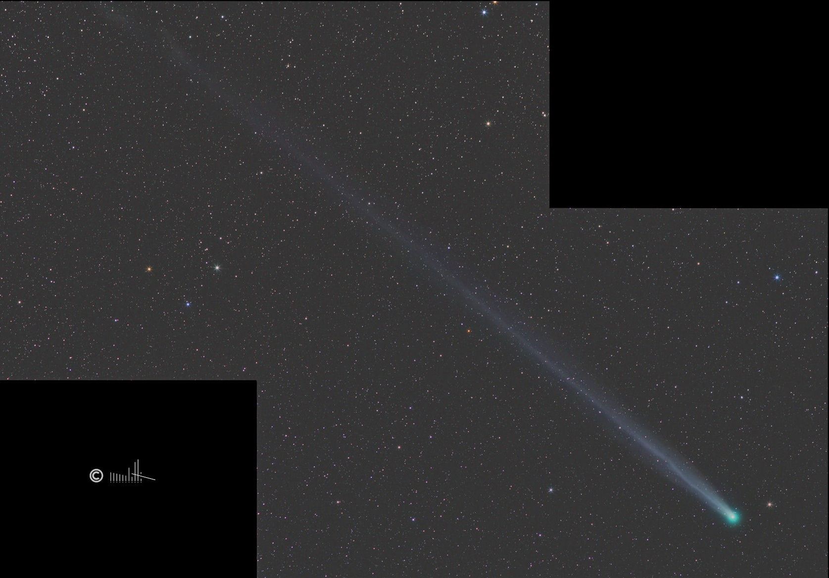 Комета C/2013 R1 Lovejoy 7 декабря 2013 года. Автор Marco Candotti. Фото получено зеркальным цифровым фотоаппаратом Кэнон с фотообъективом 200мм, общая выдержка 28мин.