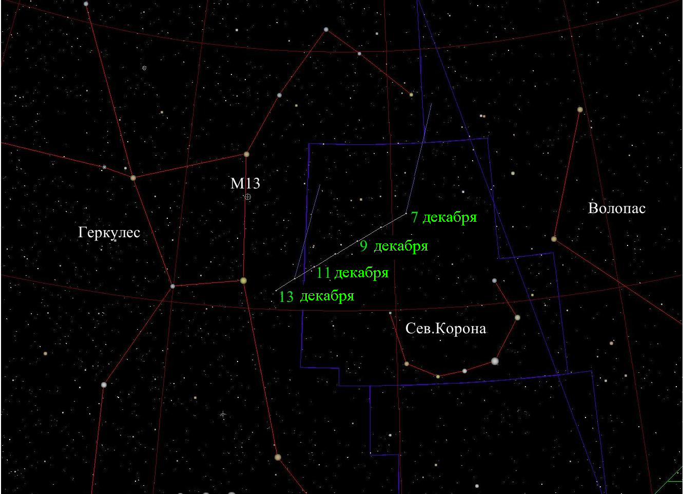Комментарий к файлу: Карта движения кометы с 7 по 13 декабря 2013 года Просмотров: 2050