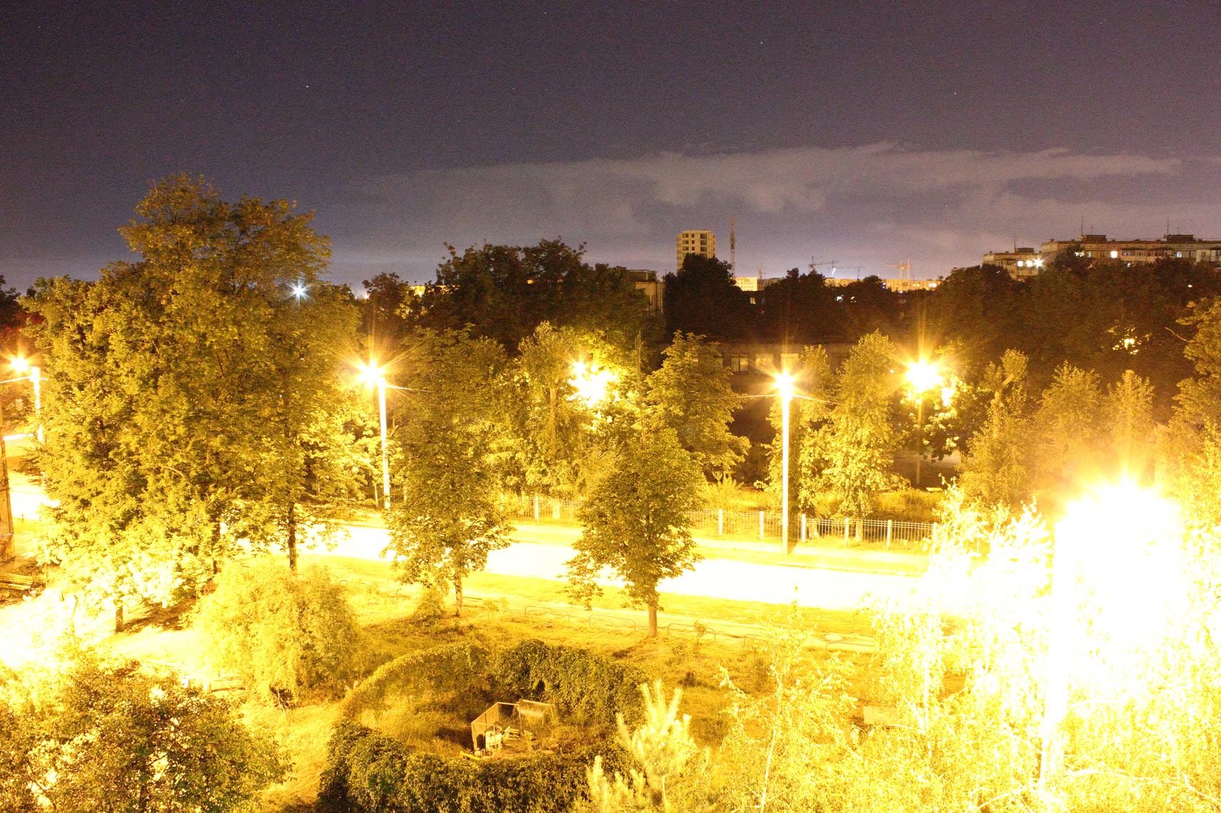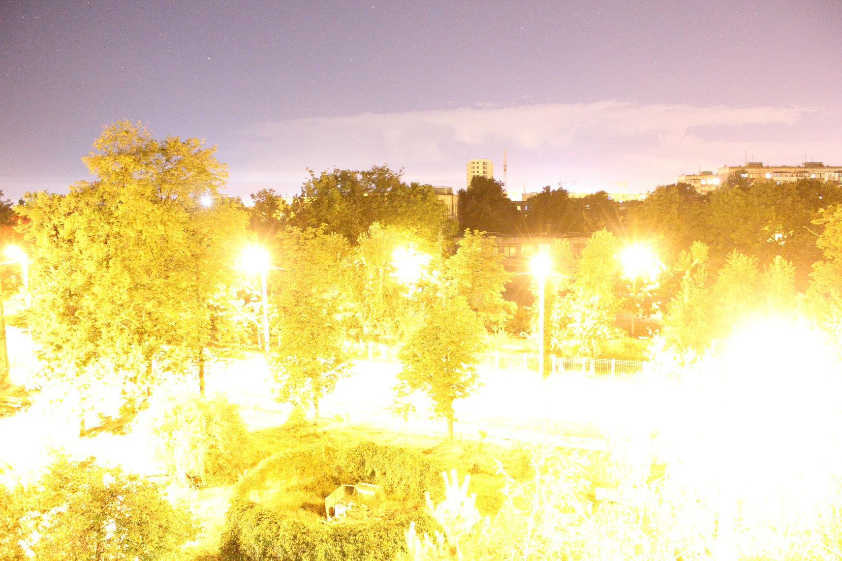 Заодно снял и засветку у своего балкона. Кэнон 550, объектив 18мм, исо6400, выдержка 8сек, диафрагмы соответственно 4, 8 и 16.  Просмотров: 2613