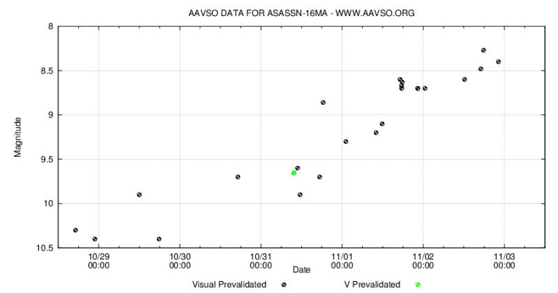 К вечеру в небе появился просвет, и я попытался наблюдать Новую в Стрельце ASASSN-16ma, блеск которой уже приближается к 6m! Но склонение -28,4 градуса и дымка над горизонтом так и не позволили её найти.