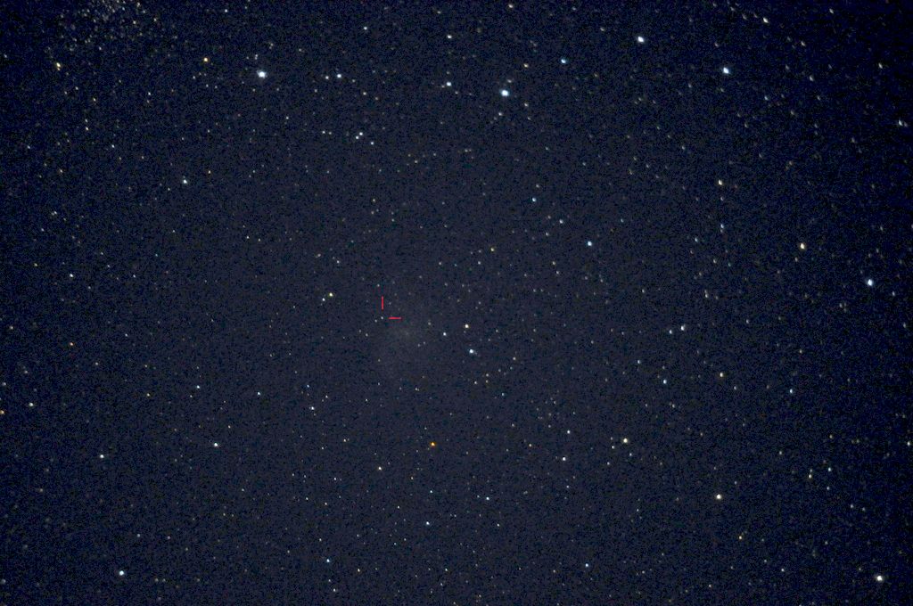 Владимир Станченко писал(а): Кроме визуала еще попробовал снять сверхновую AT 2017eaw. В ночь с 15 на 16 мая. SW2001 - CG5, камера Никон Д90 (одолжил у дочки  ), одиночный кадр, ISO 1600, выдержка 20 сек. Полярная ось выставлена даже не на глаз, а в направлении Полярной... Сверхновая примерно по центру, родительская галактика слегка просматривается. МОЛОДЦА!!! С Вашего позволения покрутил немножко уровни и отметил сверхновую.  Просмотров: 1126