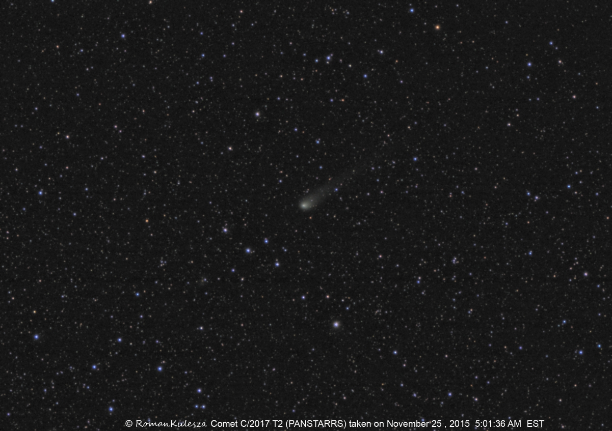 Однако скорость у кометьі : за сутки 1/3 кадра по вьісоте !!! Утром 24.11 ориентация кометьі бьіла почти вертикально хвостом вверх в телескопическом варианте на азимутальной монтировке.