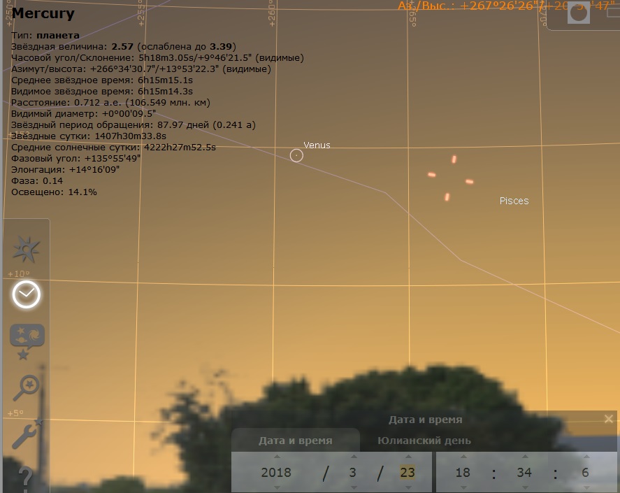 ... Меркурий не поддался моему глазу не прямым не боковым зрением. Либо я недостаточно зоркий либо городское загрязнение делает свое дело...