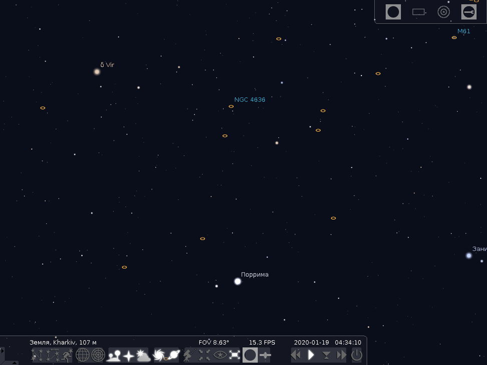 Как не странно, наши уважаемые синоптики иногда совершенно точно предсказывают погоду!  Благоприятный прогноз на ночь с 23 на 24 января подтвердился!  В планах было наблюдение с вечера трёх астероидов с блеском 14,2m, но небо было далеко не идеальным, и я не стал терять на них свое время. Основной задачей было наблюдение сверхновых в галактиках NGC4636 в Деве и М100 в Волосах Вероники. Наблюдения вел в телескоп SW2001 на селестроновской монтировке CG5. Начал с более яркой сверхновой в Деве. Родительскую галактику по цепочке звёзд от Аувы (дельта Девы) обнаружил без труда с помощью поискового окуляра ES30*70. Её ядро хорошо выделялось на фоне неба. Используя окуляры 6, 9, 17 и 3,8 мм легко заметил саму сверхновую, расположенную в удалении от ядра галактики. Лучше всего она была видна с окуляром 6 мм (167x). Блеск оценил около 12m. Очевидно, она находится вблизи максимума своего блеска. После этого переключился на галактику Фен (М100). Её также нашел без особого труда по цепочке звёзд от Денеболлы (бэта Льва). Хорошо выделялось яркое ядро галактики и просматривался светлый фон вокруг него. Но, сколько я не вглядывался в это туманное пятнышко, различить на его фоне сверхновую так и не смог. Иногда вроде пробивалась какая то искорка, но никакой уверенности а этом не было. Окуляры использовал те же самые. По последним данным блеск сверхновой после максимума с 13,2m снизился до 13,6m, а сейчас он, возможно, ещё уменьшился. В целом можно признать наблюдения успешными!