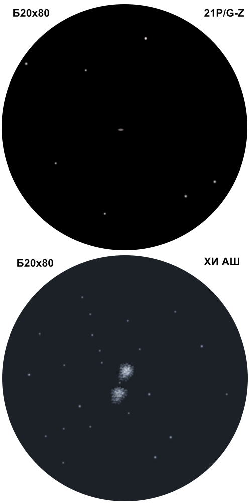 ngc7789 поразила своим размером , я представлял её поменьше, в искатель 8х50 уверенно просматривалась и даже казалось , что разрешается на звёзды, "сову" ngc457 почему-то не увидел , хотя м-103 в виде слипшихся звёзд со знакомым изгибом разглядел, следующей на пути оказалась NGC 637 & 609 , чем-то напомнила ngc7789 но немного поменьше, вспомнил я и про комету 21P/Giacobini-Zinner, нашёл быстро (карты смотрел за раннее) и даже показалось , что увидел хвост, возможно показалось