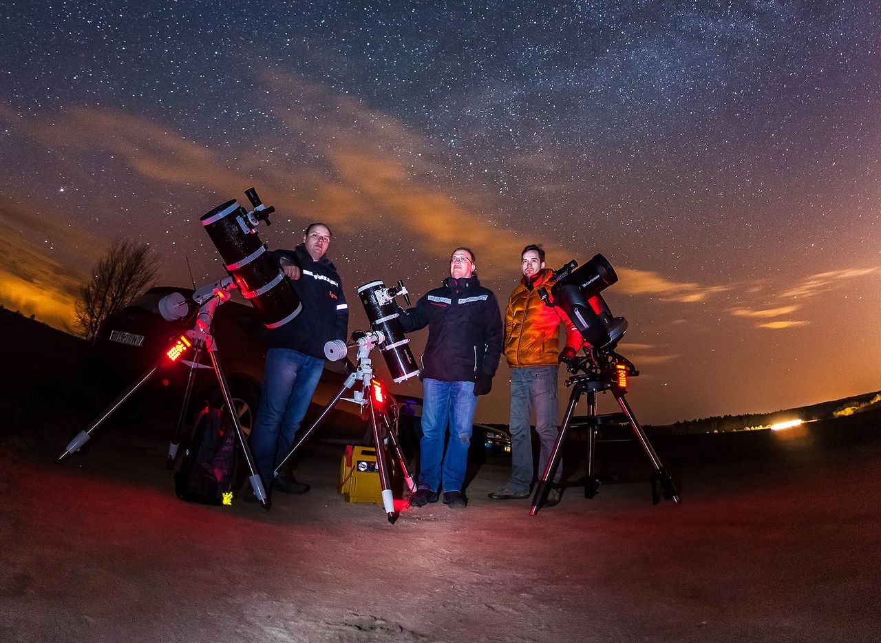 Вот и состоялось наше очередное астрономическое наблюдение! На этот раз для наблюдений все еще доступного метеорного потока Лириды, объектов дальнего космоса и объектов Солнечной системы наша группа ASTROROMANTICS (Андрей Лейчик, Виталий Хацук, Дмитрий Галацевич) отправилась за город в деревню Малявки. Погода в вечернее время радовала чистым и прозрачным небом, что предвещало прогрессивное наблюдение и занимательное путешествие! Подготовленный список объектов наблюдений включал в себя самые разнообразные и интересные объекты как для выполнения визуальных наблюдений, так и для выполнения астрофото: туманности М27 "Гантель", М57 "Кольцо", М76 "Малая гантель", галактики М51 "Водоворот", М64 "Черный глаз", М65, М66, М101 "Вертушка", М104 "Сомбреро", NGC 3115 "Веретено", NGC 3628, NGC 4038/NGC 4039 "Антенны", шаровые скопления М3, М5, М13, М92, планета Юпитер, а также кометы 41P/Tuttle-Giacobini-Kresak и C/2015 V2 "Johnson".