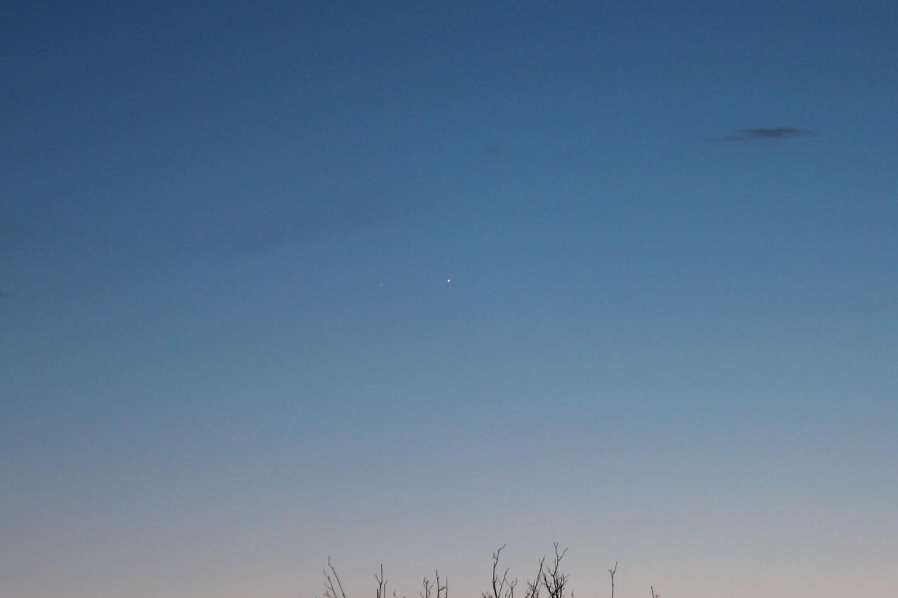 Вчера вечером в разрывах облаков уже невысоко над горизонтом увидел Меркурий невооружённым глазом. Телескоп выносить смысла не было. Если бы не погода, то сейчас весьма благоприятный период для его наблюдений.
