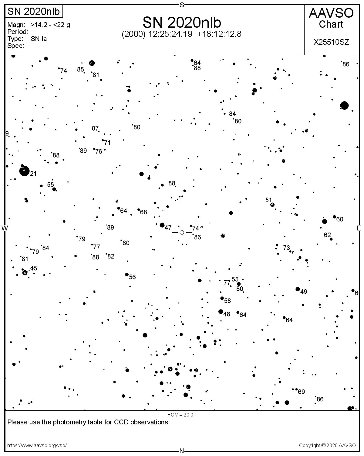 Владимир Станченко писал(а): Сегодняшний вечер уделил наблюдению сверхновых. Сначала навелся на окрестности галактики NGC 4457 в созвездии Девы. Небо было ещё светлое, но я терпеливо ждал улучшения условий видимости сверхновой 2020nvb, блеск которой уже превысил 12m. При ее высоте около 15 градусов над горизонтом и относительно темном небе несколько раз на грани глюка удавалось различить в "нужном месте" некое подобие звёздочки, однако полной уверенности в этом нет. Если в ближайшие дни её блеск увеличится до 11m, то вероятность её различить будет намного больше. После этого перенавелся на галактику М85 в созвездии Волосы Вероники. Ближе к 23 часам её высота над горизонтом составляла около 25 градусов. Сама родительская галактика различалась хорошо. Рядом с ней уверенно различалась "искорка", которую можно с уверенностью отождествить со сверхновой AT2020nlb, блеск которой сейчас около 12m. Рядом с ней находится звёздочка около 13m, которую видно не было. Есть вероятность, что эта сверхновая ещё добавит в блеске. Телескоп SW2001, окуляры использовал 6 и 9 мм. С 9 мм окуляром видимость была получше.