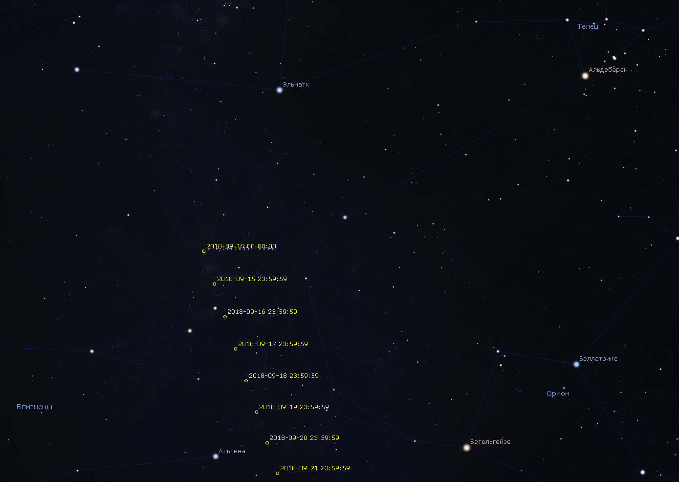 Карта окрестностей для поиска кометы на ближайшее время.