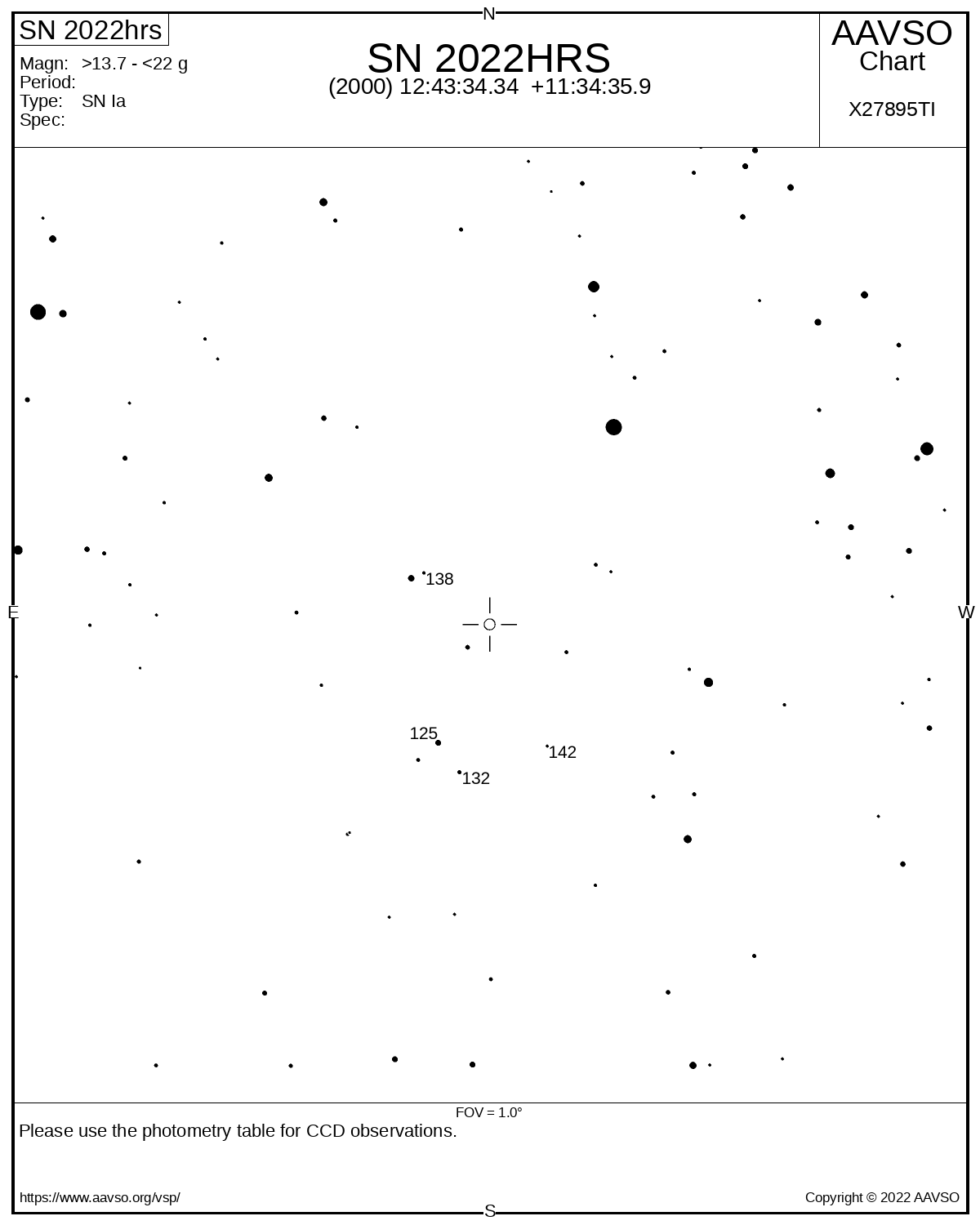 Сверхновая SN 2022hrs в галактике NGC4647 постепенно прибавляет в яркости. Сегодня поздним вечером при ясном небе с проницанием около 6,2-6,3m в районе Малой Медведицы наблюдал ее в свой SW2001. Окуляры использовал 17, 9, 6 и 3,8 мм. Лучше всего сверхновая была видна с 6 мм окуляром. Рядом выделялась сравнительно ярким пятном эллиптическая галактика М60. Родительская галактика тоже легко различалась прямым зрением. Блеск сверхновой мне показался заметно ярче звезды сравнения 12,5m, хотя она была видна на фоне тумана галактики. Моя оценка примерно 12,2m. Очевидно, ее блеск приближается к максимуму и, возможно, она ещё прибавит 0,3-0,5m в зависимости от наличия поглощающей материи на луче зрения. Карта звёзд сравнения от AAVSO.  Просмотров: 4932