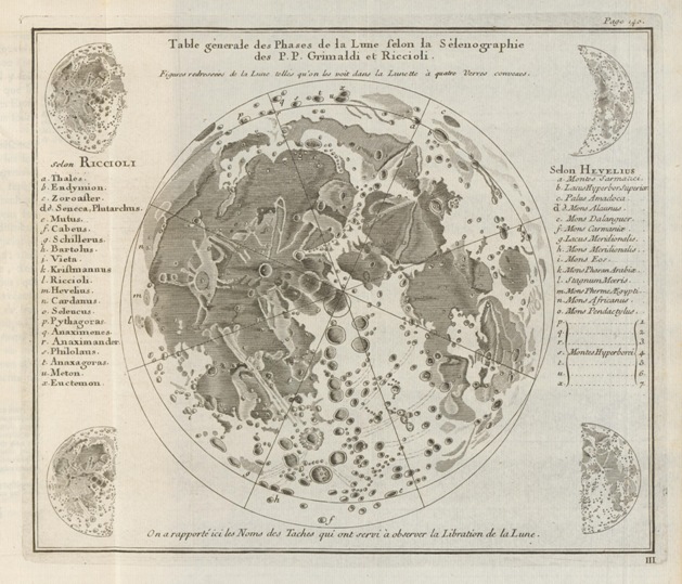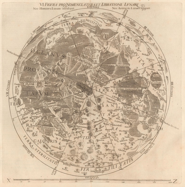 1707г. Немецкий астроном Иоганн Габриель Доппельмайер,в сотрудничестве с нюрнбергским гравером, картографом, издателем карт Иоганном Баптистом Гоманном, выпустили карту, «Tabula Selenographica». Это была отлично выполненная работа, содержащая изображение двух лунных дисков. На одном из которых (слева) нанесены наименования Яна Гевелия, а на другой (справа) Джованни Баттиста Риччоли. Карта задумана как сравнительное пособие, обеспечивающее наглядность и простоту в работе с двумя разными номенклатурами.