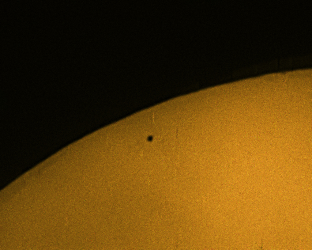 Наблюдал в Киеве на работе С коллегой (тоже ЛА) притащили фильтр и телескоп, вели наблюдение до самого заката. Облачность была сильной и довольно мешала но сквозь просветы все же удалось кое что посмотреть и даже сделать фото через окуляр на смартфон, Меркурий довольно отчетливо виднеется. Пленка Баадер Визуал + Оранжевый фильтр №21.  Просмотров: 1417
