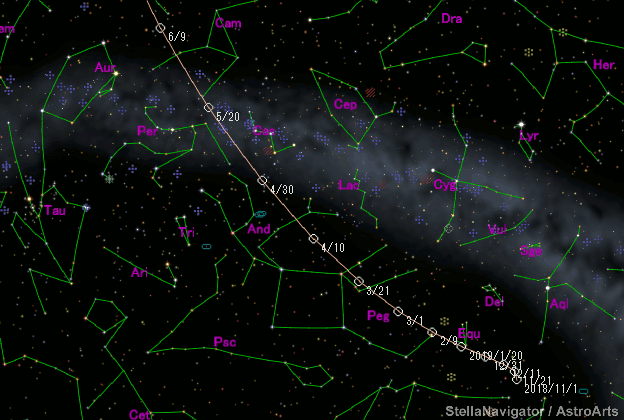 Согласно прогноза погоды после полуночи 14 февраля обещали ясное небо. Фактически с 30 ноября прошлого года полноценных наблюдений провести мне не удалось. Лунное затмение прикрылось облаками, пара околоземных астероидов прошла мимо, две сверхновых разгорелись и почти погасли, комету 46Р Виртанена в период максимального блеска тоже не увидел, да и немало других объектов и явлений наблюдать не удалось. Потому с надеждой поглядывал на вечернее небо, на котором Луна пробивалась сквозь облачность. В половину третьего выглянул в окно и был разочарован, звезды светились через какую-то муть. Но к четырём часам муть рассеялась и я бегом навелся на созвездие Льва, через которое сейчас движется комета C / 2018 Y1 (Ивамото). 7 февраля она прошла перигелий, а 12 февраля наиболее приблизилась к Земле. Комету без проблем нашел в искатель 9х50. Видна она была боковым зрением. После этого в свой SW2001 с окуляром ES30x70 рассмотрел комету подробнее. Выглядела диффузным круглым пятном с нарастанием яркости к центру и почти звездообразным ядром. Признаков хвоста не различил. С окуляром 17 мм комета смотрелась ещё эффектнее. Все таки высота над горизонтом около 30 градусов скрадывала видимость. Блеск кометы оценил около 7m, может несколько поярче. Недалеко от кометы различалась галактика NGC 2903, яркость которой была заметно меньше.