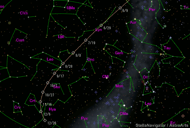 Появилась информация о вспышке яркости кометы C/2018 R3 (Lemmon)! 25 мая 2019 года венгерский астроном-любитель Шандор Сабо отметил внезапное увеличение блеска кометы до 11,6m, а предыдущей ночью британский астроном-любитель Майк Коллинс оценил блеск кометы в 8,9m! В принципе, это позволяет наблюдать комету даже в бинокль. Но находится она низко над горизонтом в северной стороне горизонта в созвездии Жирафа.На широте 50 градусов ее высота над горизонтом едва превышает 20 градусов. Условия ее видимости будут ухудшаться.
