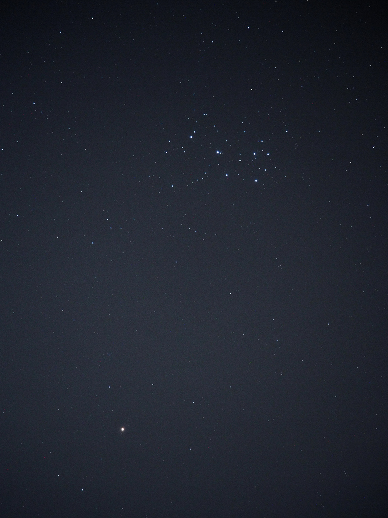 31.03 перед началом наблюдений глянул на Марс и М45, наблюдал с Доб 6"- красота, но в одном поле зрения видно только в искатель. Зарисовка в граф. редакторе.