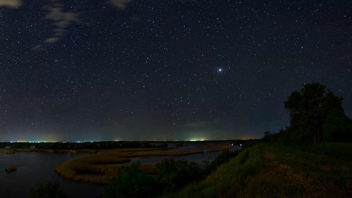 Воспользовавшись тем, что Луна «прячется» к полуночи и оставляет еще приличный «кусок» ночи для наблюдения Дипскай объектов мы с Женей (jeck_asteroid) в ночь с 7-го на 8 сентября мы решили собраться и понаблюдать ДИПы в его GSO DOB10 во дворе многоэтажки. Женя живет в относительно темном районе ближе к окраине (оранжевая зона засветки). Наши планы «нарушил» Олег (Gulik), который присоединился к нам в последний момент и предложил отъехать на его машине немного от города в село Каневское в днепровские плавни (желтая зона). Мы с радостью согласились, быстро погрузились и отправились в путь. После непродолжительной дороги быстро привели телескоп в «боевое» положение примерно в час ночи приступили к наблюдениям. Наблюдали с высокой кручи с почти отвесными краями на берегу плавней. Сектор наблюдений был немного ограничен сосновой рощей примерно в десяти метрах от нас на западе. На востоке вдоль всего горизонта «сияло» Запорожье, на севере на расстоянии пары километров сильно «фонил» дачный поселок и лишь на юге все было более-менее благополучно. Тем не менее по сравнению с городом небо было просто великолепное. Отлично просматривался млечный путь. Помимо телескопа с собой еще был мой бинокль Minolta Standard EWA 10x50, биноприставка Tecnosky Horizon Binocular 1.25" с окулярами GSO 15мм SuperView, почти полная линейка окуляров Vixen LVW, окуляр Meade 5.5мм UWA82° и Explore Scientific 8.8мм 82°, а также прекрасный обзорный окуляр Apogee WIDE SCAN TYPE II 30mm / 84грд До рассвета оставалось не так уж много времени, и мы активно принялись наблюдать. Наиболее запомнились следующие объекты: М31 была уже вблизи зенита и поэтому рассмотреть ее удалось чудесно. В Apogee WIDE SCAN TYPE II 30mm овал галактики не укладывается целиком в почти духградусное поле зрения. На богатом звездами фоне неба отлично видны все три объекта: центральная часть М31 с «лыжней», М32 в виде расфокусированной звездочки, призрачный овал М110. На удивление в Tecnosky Horizon Binocular «лыжня» была видна тоже довольно контрастно и ярко, ядро галактики много ярче тела галактики, достигая почти звездообразной яркости в центре. М32 выглядит ярким шаровым диффузным объектом. М110 призрачный эллипс с плавным падением яркости к краю; М33 "Туманность Треугольника" – невооруженным взглядом не видна, но прекрасно видна в бинокль и оптический искатель чуть севернее середины отрезка α Tri - τ Psc. В WIDE SCAN центральная часть галактики занимает более половины поля зрения, хорошо выделяется довольно однородное яркое ядро, яркое месиво южных ветвей, одинокая северная ветвь спиралью упирается в яркое пятно NGC 604. Опять удивил бинокуляр Tecnosky Horizon Binocular. В него М33 смотрелась тусклее, но благодаря преимуществу бинокулярного зрения структура просматривалась заметно лучше. NGC 7789 - крупное скопление с большим количеством не ярких звезд менее чем в градусе к югу от ро Кассиопеи, очень эффектная в апертурный телескоп. Потрясающе красивый объект! Находится легко в виде крупного пятнышко неподалеку от Беты Кассиопеи, между яркими парами звезд в которые входят Сигма и RHO Кассиопеи. Звезды скопления расположены изящно изогнутыми полосами и чередуются темными провалами. Очень напоминает рисунок бутона розы. M15 шаровик в Пегасе прекрасно виден в бинокль в виде яркой пухлой звезды. В телескоп охотно разбивается на звезды и прекрасно откликается на увеличение. Больше всего понравился в окуляр Meade 5.5мм UWA82° (237х). NGC7000 - т