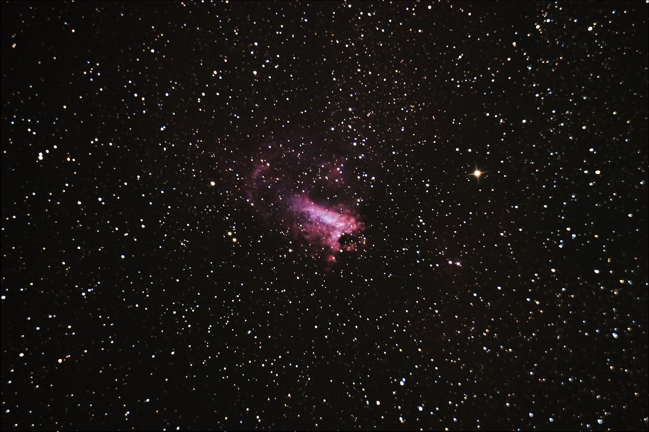 Комментарий к файлу: Туманность М 17 "Омега". 6 августа 2016 года. Малявки. Телескоп SKY WATCHER BKP 2008 HEQ5 PRO SynScan, фотоаппарат Canon EOS 1100D, прямой фокус, выдержка 45 сек, ISO - 3200. Сложение 21 фото в DeepSkyStacker, постобработка XnView, Digital Photo Professional. Просмотров: 1623