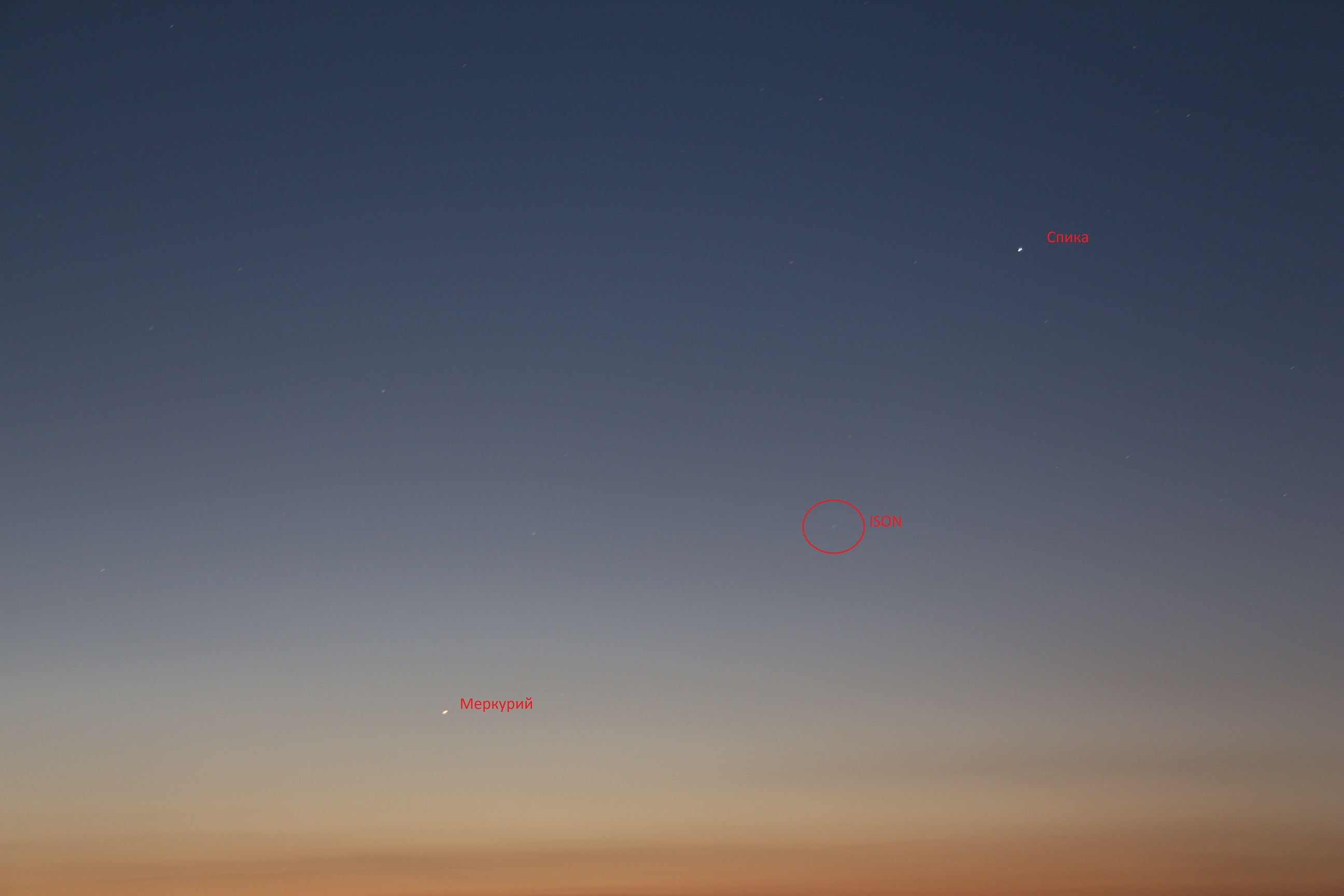 Одна из последних фотографий кометы перед сближением с Солнцем. 24 ноября 2013 года, вид из обсерватории на Канарских островах, автор Juan Carlos Casado. Ждем прохождения перегелия и надеемся, что условия наблюдения будут более благоприятны.