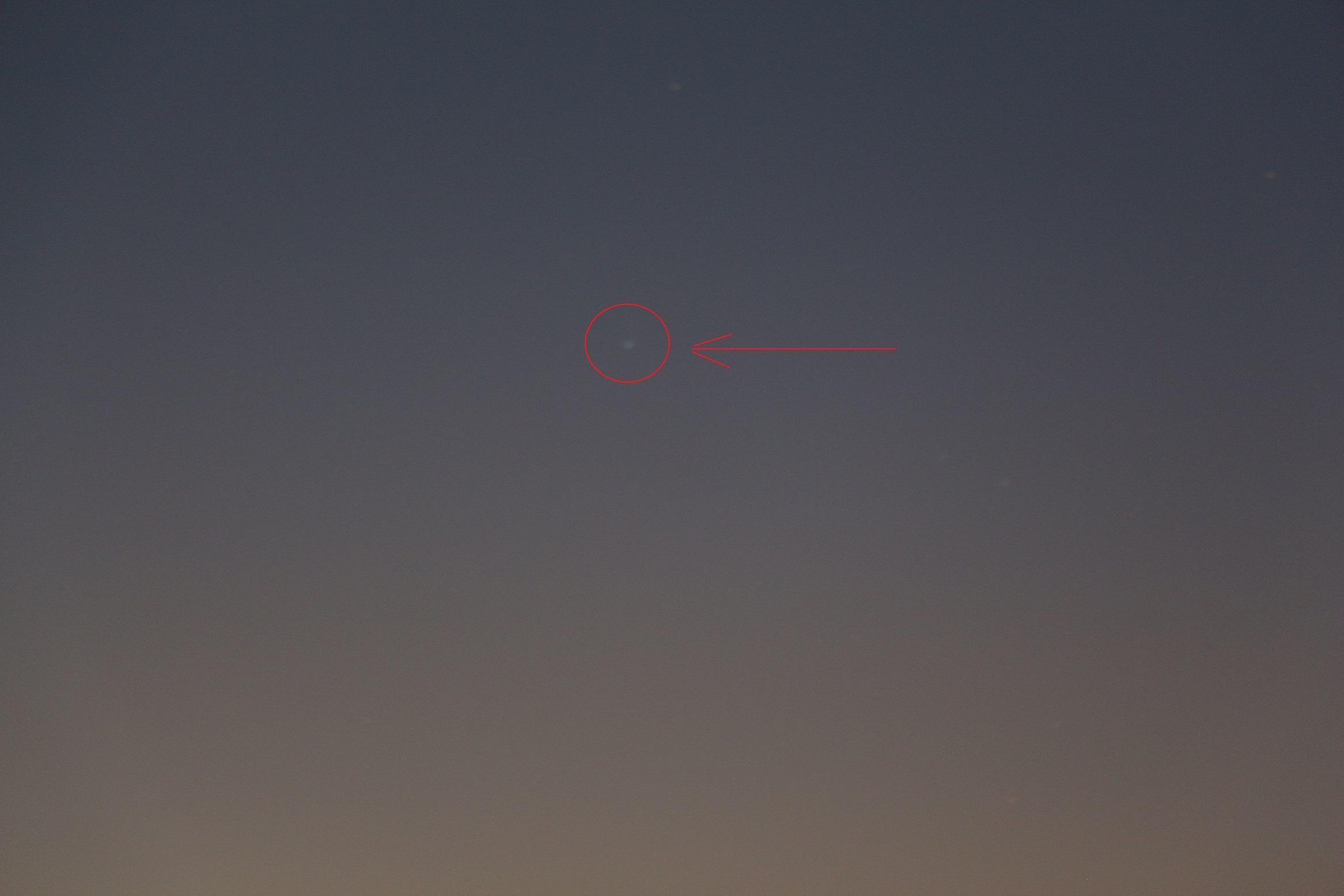 Всем привет. Сегодня в пригороде Полтавы, таки удалось сделать выезд на поиски кометы. Уже в 4-30 был в расположении телескопа, фотоаппарата и т.п. Обнаружить ее оказалось не так и просто, виной всему были облака над горизонтом и там же сильная дымка. Пользуясь Stellarium и получасовой возней, около 5-00 с трудом таки удалось обнаружить. Самое "шикарное" время для наблюдения, оказалось приблизительно с 5-15 до 5-45. Что хотелось сказать, на самом деле я хотел большего или точнее говоря более зрелищных видов, но имеем что получилось =) Наблюдения производил в 8" Добсон от ская. Как не странно, самым комфортным оказалось наблюдать в 25мм окуляр, да и то комета больше напоминала подобие звездного скопления, явно размытое пятно, со слабо выраженным зеленоватым оттенком (хвоста так и не увидел). В 10мм объектив, все смотрелось намного хуже, такое впечатление, что не возможно настроить фокус (не подумайте, скоп юстировался перед наблюдениями), а при применении еще и линзы Барлоу - так вообще караул, ничего не видно, сплошная каша (но видимо вина всему, слишком низкое расположение к горизонту). Так как весной не удалось наблюдать комету, то я счастлив, что выпала погодка и я хоть эту увидел. Вдогонку, сделал пару фоток на зеркалку Canon D650 (на штативе) с выдержкой по 20 сек, ISO 400 и 200 соответственно. Спасибо за внимание, всем приятных наблюдений, кто еще не успел или не было возможности лицезреть космическую странницу…
