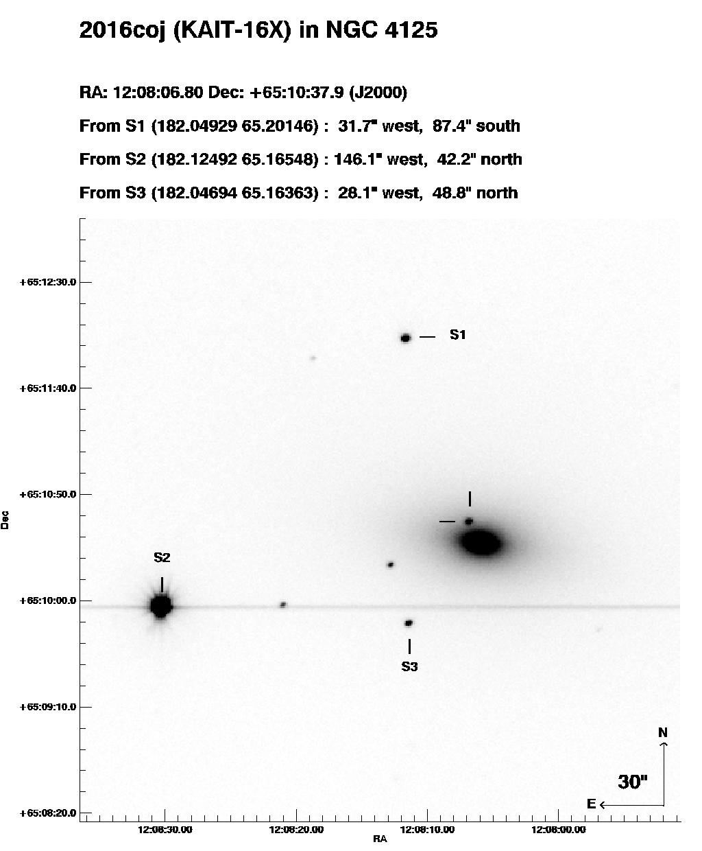 Координаты сверхновой R.A. = 12h08m06s.800, Decl. = +65°10'38".24