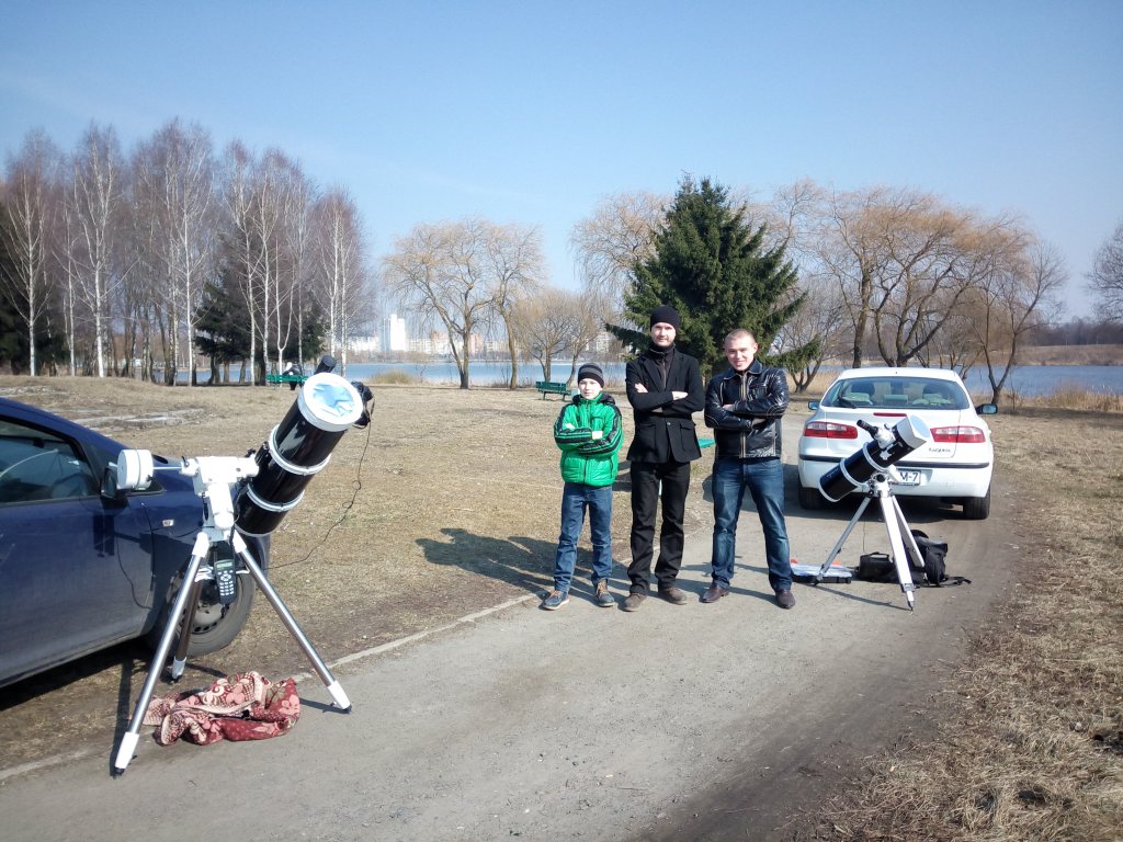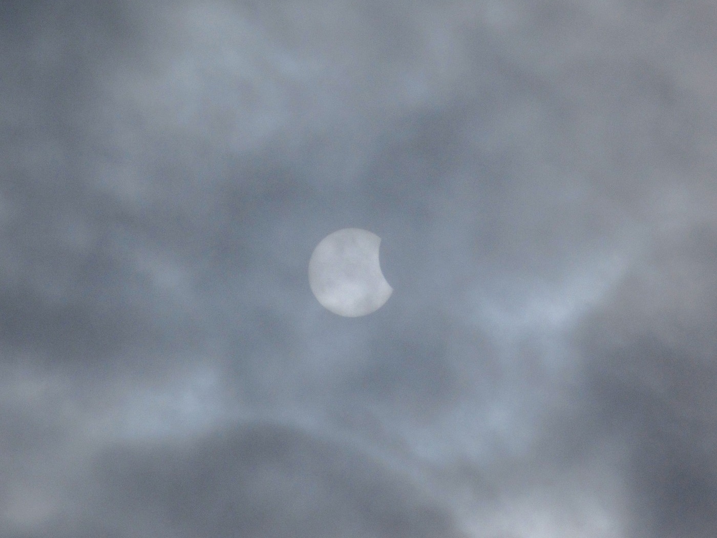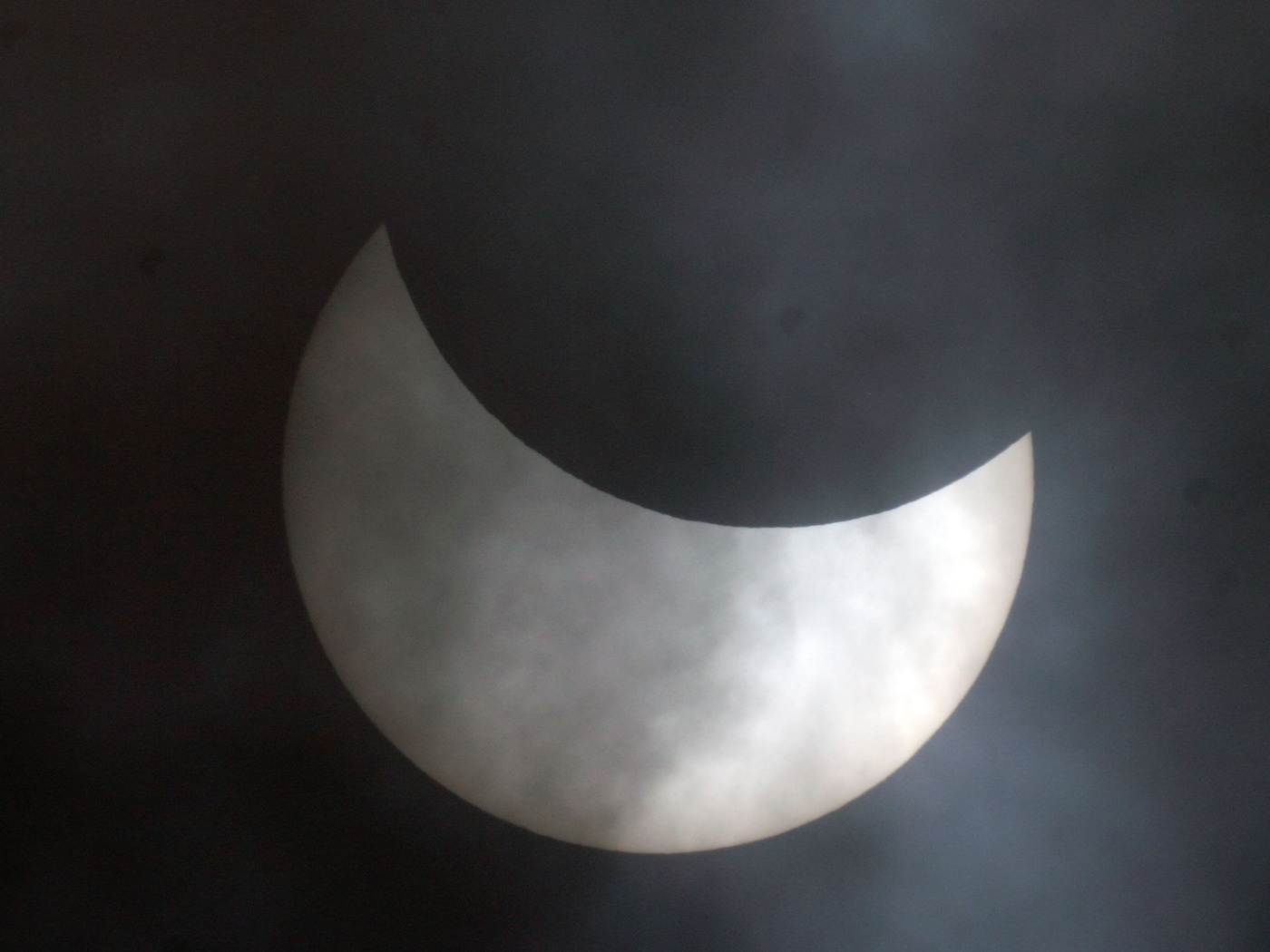 Напишу и я отчет о наблюдениях в Харькове  Я видел уже немало солнечных затмений, но в основном это были визуальные наблюдения, а вот с фотографиями этого явления как-то не сложилось. Поэтому к затмению 20 марта 2015 года готовился заранее - приобрел баадеровский фильтр на трубу SW130/650DS, провел пробные съемки в прямом фокусе на зеркалку Кэнон 550, для визуала сделал фильтры на бинокль Вортекс 6,5х32, для наблюдения просто глазом сделал фильтры из старых 5-ти дюймовых дискет для себя и многих знакомых. Но все эти фильтры не понадобились - погода подвела и затмение удалось наблюдать только через облачность, хоть как-то. Начало затмения видно не было, но минут через десять появились кое-какие просветы, через фильтр в телескоп не было видно ничего. Поэтому я схватил мыльницу и с рук на зуме 12х без фильтра сделал пару-тройку кадров - хоть какие-то, но все же фото: мыльницей через первые просветы  Просмотров: 1604