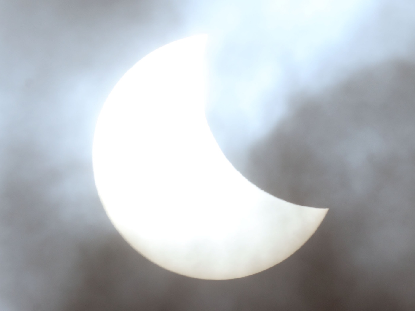 Я наблюдал затмение вчера в Харькове. Был на работе, и потому ограничился наблюдениями невооруженным глазом. Брал с собой сварочное стекло, но оно практически не понадобилось, вместо фильтра вполне сошла облачность. Многие прохожие шли, задрав головы. Тоже смотрели на затмение.