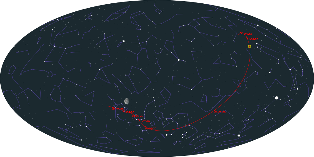 Околоземный астероид (52768) 1998 OR2 приближается к Земле и быстро набирает блеск! Правда, довольно быстро движется в сторону южного полушария. Сегодня вечером из созвездия Рыси он "переедет" в созвездие Рака при блеске 13,3m, что позволяет наблюдать его в средние телескопы. Размеры астероида оцениваются в 2-4 км. Ближе всего астероид подойдет к Земле 29 апреля (на 6,2 млн.км) при блеске 10,9m и склонении -22°34'. Максимального блеска 10,8m достигнет 1 мая при склонении -34°09', когда в наших широтах наблюдать его уже будет практически не возможно. Потому к наблюдениям приступать предпочтительнее уже сейчас.