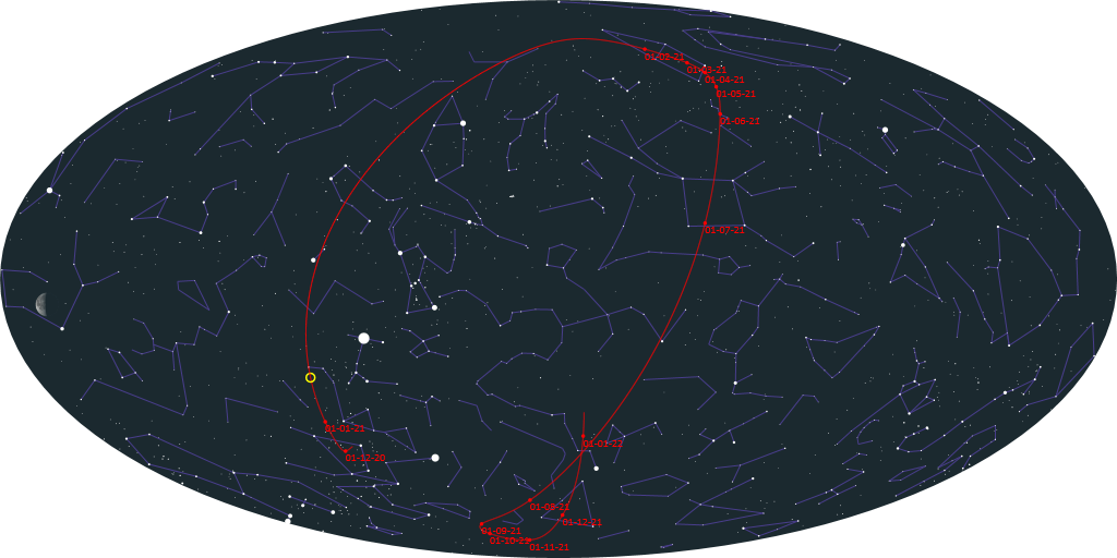 К Земле приближается астероид 2020 WU5, который 13 января пройдет на расстоянии 8,1 млн.км. Максимальный блеск астероида составит 12,9m. Его размер в зависимости от альбедо оценивается 0,5-1,1 км.
