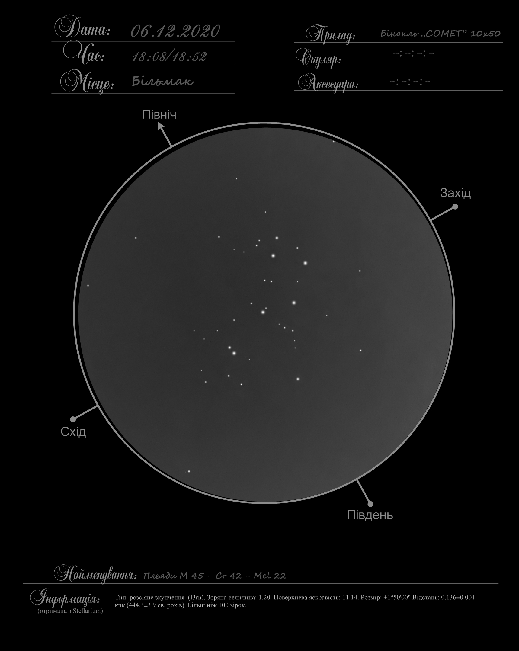 20-52 – Вирішив сильно не розслаблятися, доведеться спостерігати в прожилках між хмарами об’єкти які там видно. Інакше так можна чекати “з моря погоди” усю ніч. І всі спостереження коту під хвіст.