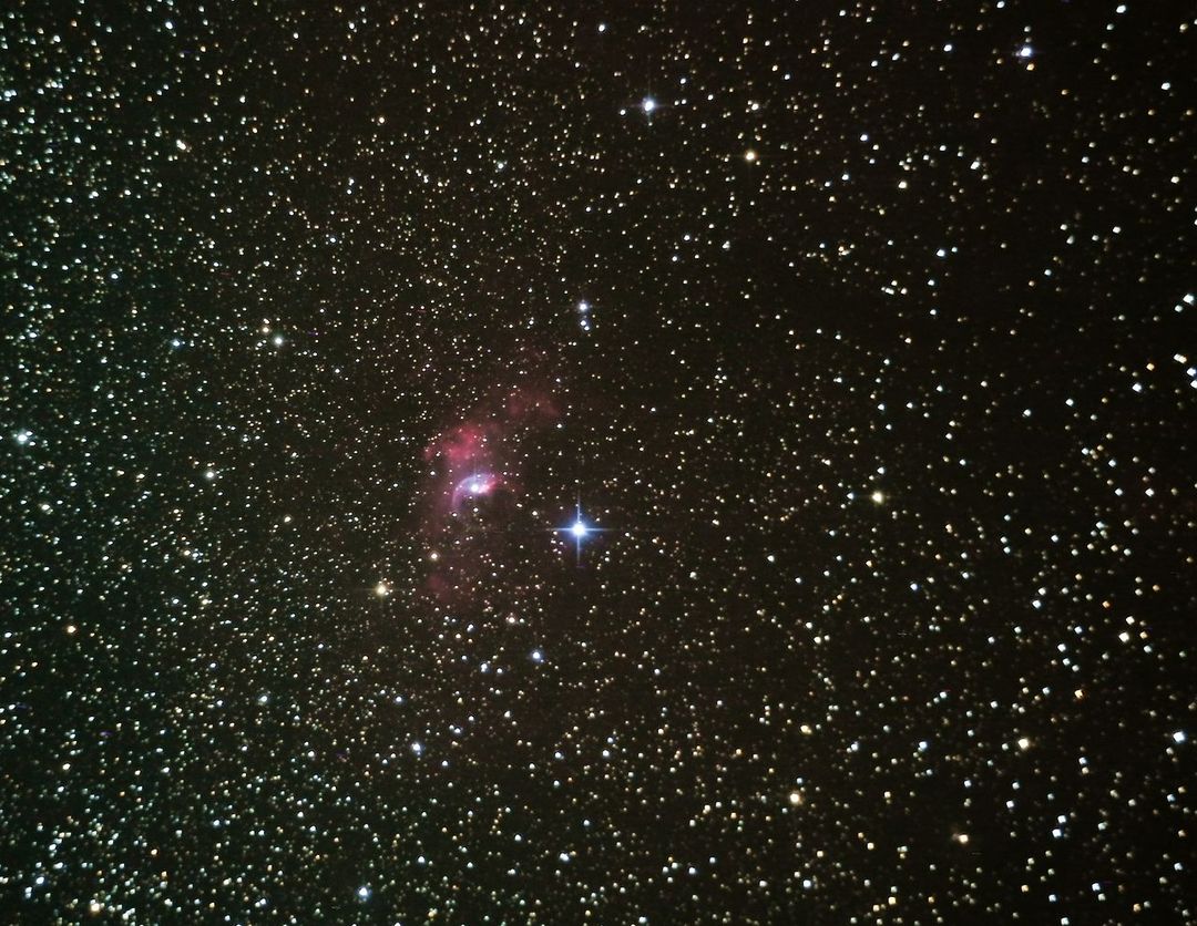 Комментарий к файлу: Эмиссионная туманность NGC 7635 "Пузырь" в созвездии Кассиопея. Телескоп SKY WATCHER BKP 2008 HEQ5 PRO SynScan, фотоаппарат Canon EOS 1100D, линза Барлоу Vixen 2x - T adapter, выдержка 1 минута, ISO - 3200. Сложение 26 фото в DeepSkyStacker, постобработка XnView, Digital Photo Professional. Просмотров: 1979