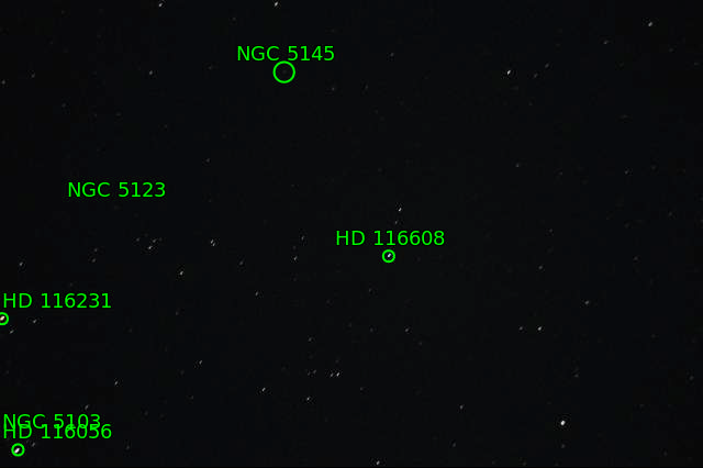 15 июня вечерком пытался заснять сверхновую в галактике NGC 5145. К сожалению, фото получились плохие. Галактика находилась в западной части неба, пришлось переворачивать трубу. Балансировка нарушилась, а времени исправлять не было. Звезды растянулись. Сама галактика на фото видна, а сверхновую отождествить не удалось. Возможно блеск ее упал. Визуально наблюдать практически не пытался.  Просмотров: 1246