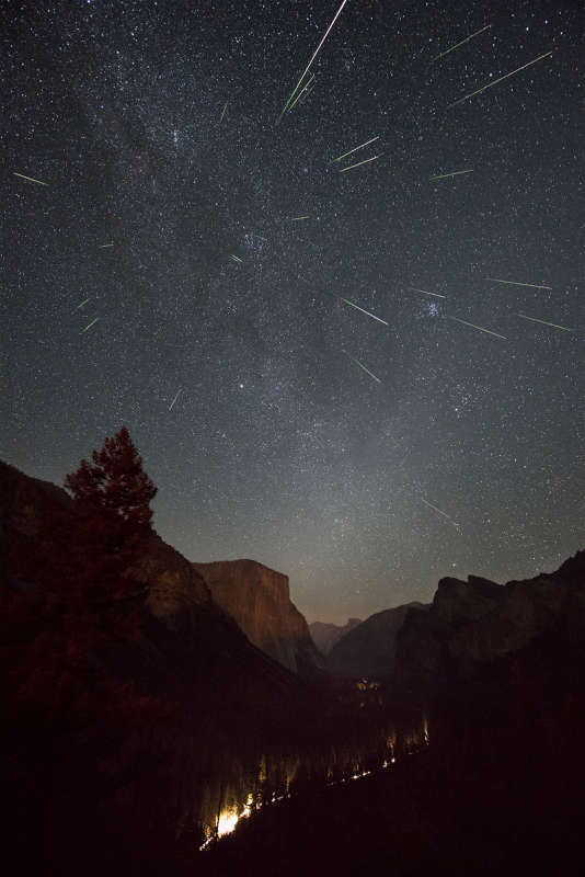 К сожалению, в период максимума задождило. Но в конце июля - начале августа мне удалось наблюдать до десятка персеид. А вот что творилось в небе Йосемитского национального парка (США). Светлая полоса внизу - свет автомобильных фар.Автор Майк Шоу.