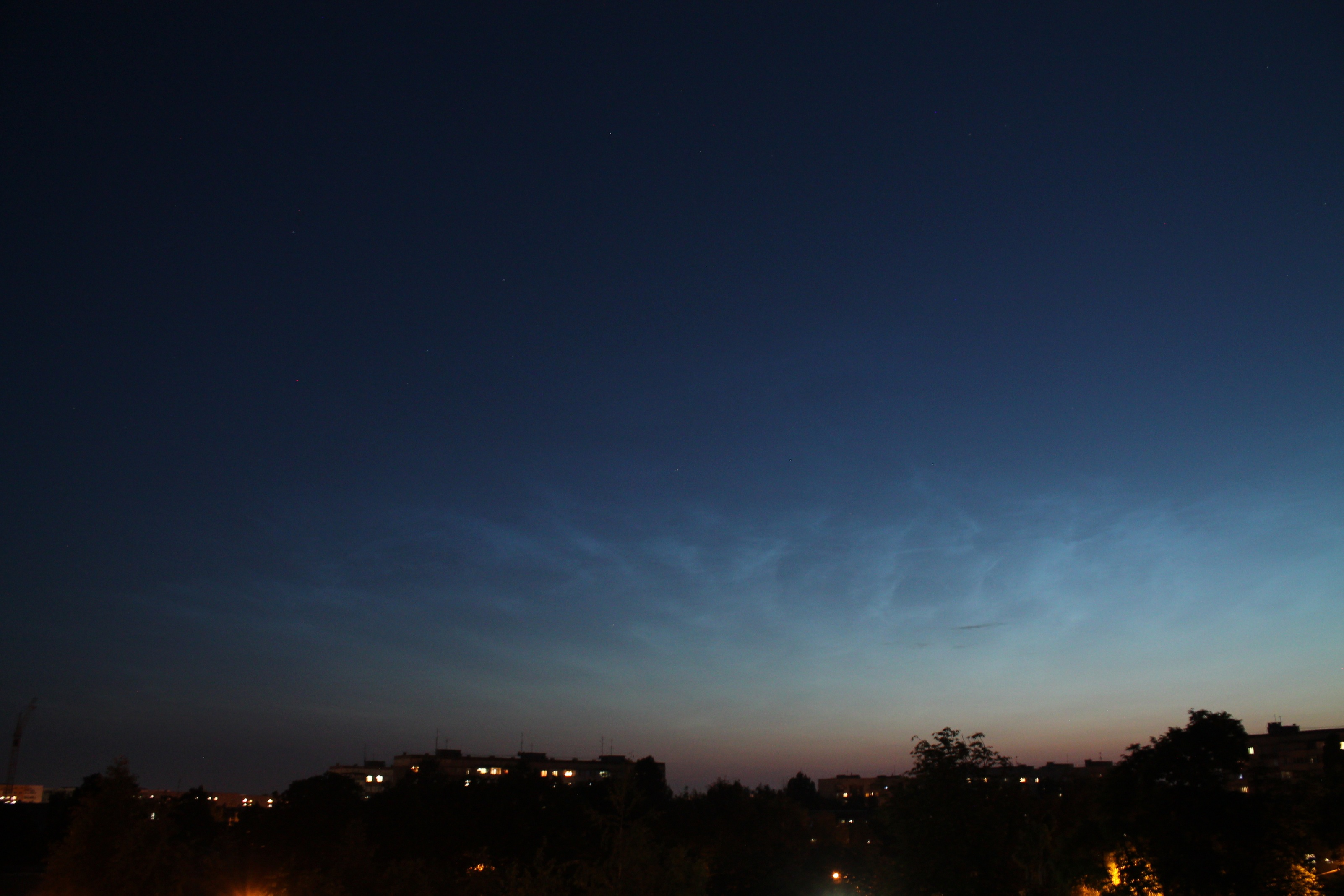 Сріблясті хмари 29.06.2021 р. (23:26 за Київським часом) м.Київ Фотоапарат: Nikon D7200 Об'єктив: Nikkor 18-105 мм Штатив Параметри: 24 мм | f 9 | ISO 400 | 15 сек.