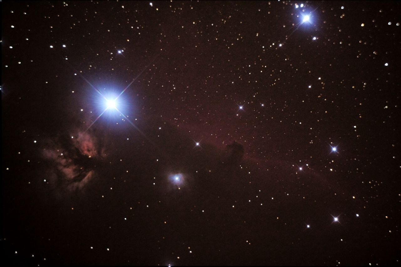 Комментарий к файлу: Туманность NGC 2024 "Пламя", туманность NGC 2023, туманность IC 434 и туманность В33 "Конская голова" в созвездии Орион. Телескоп SKY WATCHER BKP 2008 HEQ5 PRO SynScan, фотоаппарат Canon 1100D, прямой фокус, выдержка 30 сек, ISO - 3200. Общая выдержка 5 минут. Сложение 10 фото в DeepSkyStacker, обработка XnView, Digital Photo Professional. Просмотров: 1044