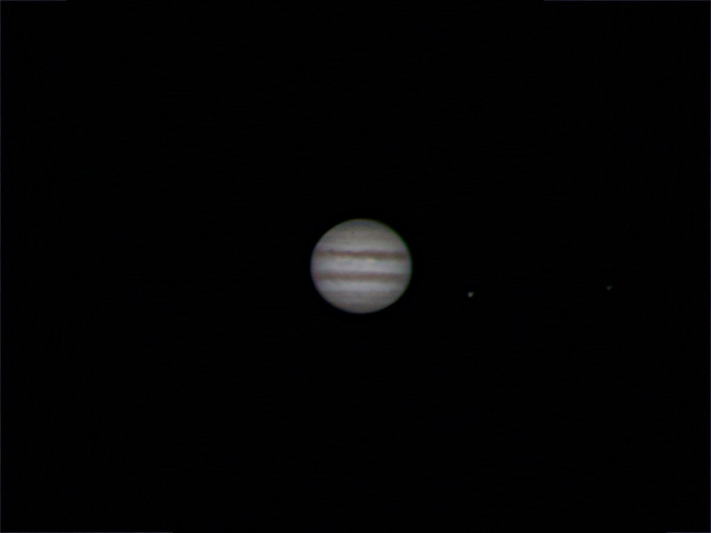 Юпитер. Dob10 с желтым фильтром. Отчетливо видны полосы умеренных широт, экваториальные полосы делились на "подполосы" разной интенсивности. Хорошо были видны неровности полос и заметны несколько светлых размытых точек циклонов на одной полосе. БКП не было видно.