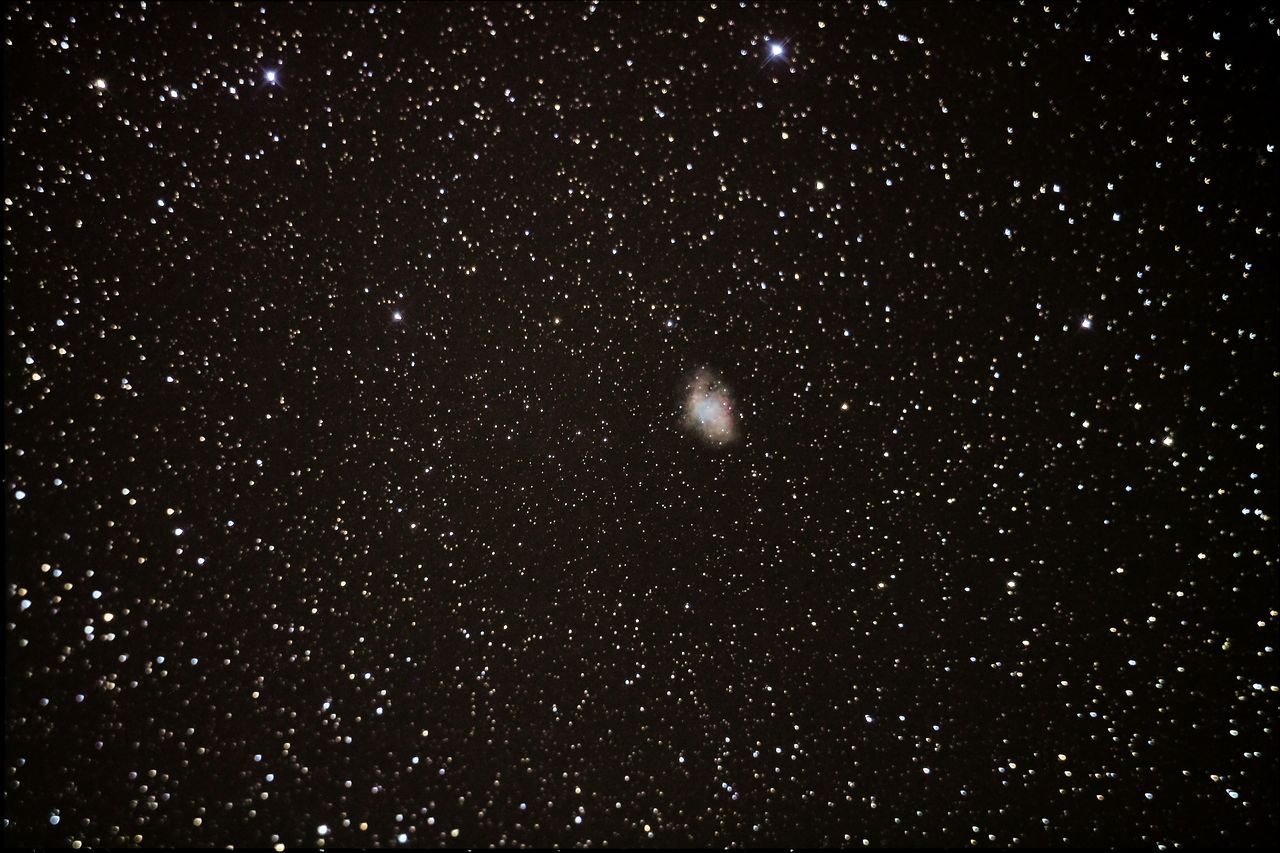 Комментарий к файлу: Крабовидная Туманность М1. Телескоп SKY WATCHER BKP 2008 HEQ5 PRO SynScan, фотоаппарат Canon 1100D, прямой фокус, выдержка 30 сек, ISO - 3200. Общая выдержка 10 минут. Сложение 20 фото в DeepSkyStacker, обработка XnView, Digital Photo Professional. Просмотров: 1044