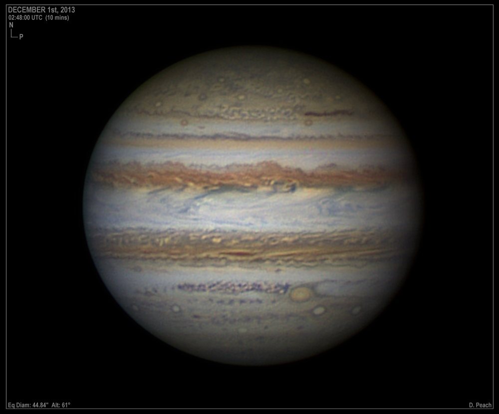 В качестве анонса — один из последних снимков Юпитера, полученный на 20 дюймовом телескопе, автор Damian Peach.