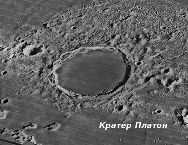 У наблюдателей объектов далекого космоса есть несколько фаворитов, которые они непременно навещают при каждом наблюдении, а также рекомендуют для обязательного просмотра новичкам — это всем известная галактика Андромеды, туманность Ориона и шаровое скопление в Геркулесе. У наблюдателей Луны тоже есть свои фавориты. Одним из таких любимцев является кратер Платон (Plato). Нет сомнений, что однажды познакомившись с этой лунной достопримечательностью, вы занесете её в личный список небесных чудес и будете посещать снова и снова. В отличие от многих других лунных образований, которые недоступны для наблюдений в полнолуние, кратер Платон можно разглядеть даже в театральный бинокль как большой тёмный овал, расположенный между Морем Холода (Mare Frigorum) и Морем Дождей (Mare Imbrium). Благодаря чрезвычайно низкому альбедо (отражательной способности), дно кратера выглядит значительно темнее окружающей его лунной поверхности. Составляя карту Луны, Ян Гевелий обозначил его как «Большое Чёрное Озеро», однако это название не прижилось среди астрономов. В 1651 году итальянец Джованни Риччоли издал карту Луны, где предложил название, которое и дошло до наших дней, — Платон.