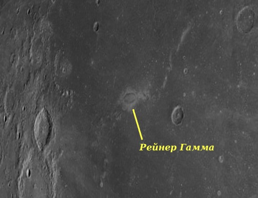 В заключение, давайте направимся к западной части Океана Бурь (Ocean Procellarium) чтобы отыскать овальное пятно, по форме напоминающее головастика. Рейнер Гамма (Reiner Gamma) редко привлекает к себе внимание любителей астрономии, и это несмотря на то, что является одним из самых таинственных мест на поверхности нашего спутника. Рейнер Гамма часто обозначается как кратер, однако в действительности никакого отношения к кратерам не имеет. Более всего это образование напоминает гигантскую воронку, происхождение которой ученые пока не могут объяснить. Вдобавок данные Аполлона показали, что именно в этом месте находится очаг большой магнитной аномалии. Есть ли между ними связь? На данный момент этот вопрос остается открытым.