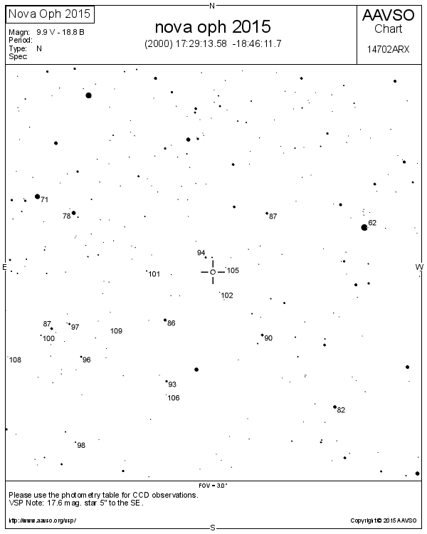 Новая Змееносца достигла максимума и, по сообщениям некоторых наблюдателей, пошла на спад. Блеск её достигал около 9,3-9,5m.